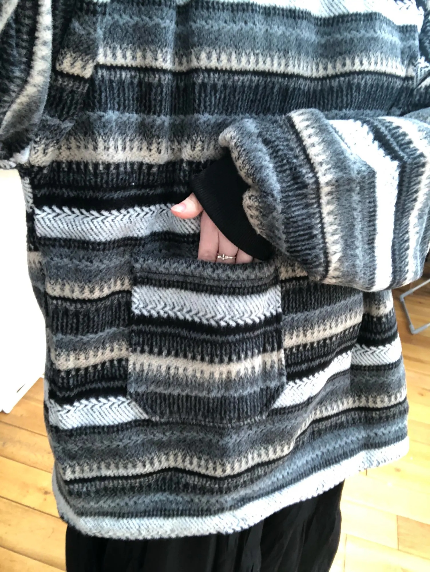 Немного короче, чем я ожидала, но я короткая в любом случае, так что это нормально. Отличное качество, приятный теплый пушистый вязаный материал, очень удобный. Настоятельно рекомендуем!