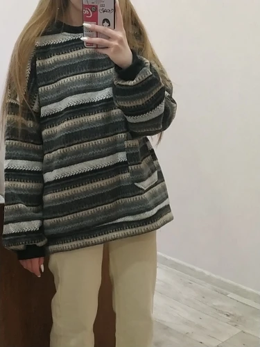 Свитер Женский вязаный в полоску, в стиле ретро, оверсайз, осень