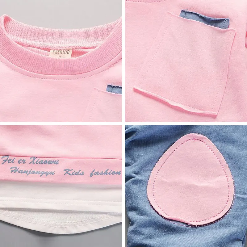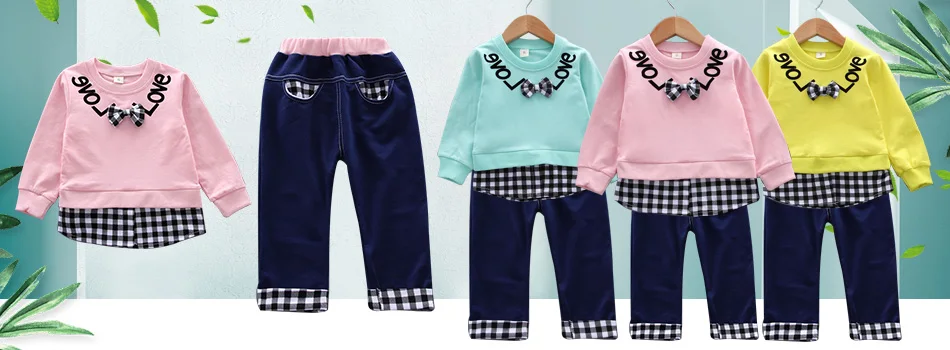 Одежда для маленьких девочек, новинка на весну и осень, хлопковая одежда, повседневный спортивный свитер с длинными рукавами и карманами с надписью, костюм из двух предметов для девочек