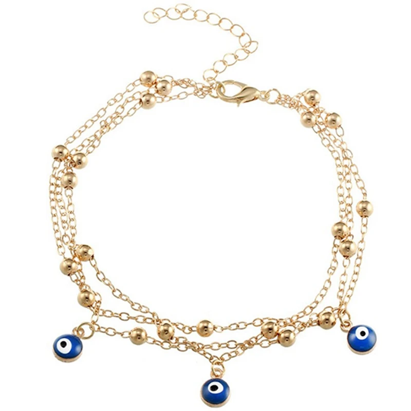 Ножной браслет для женщин, 2 стиля, с турецкими глазами, с бусинами, 2021