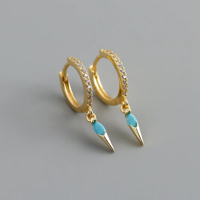 Серьги-подвески женские из серебра 925 пробы, с цирконом, с цветным конским глазом