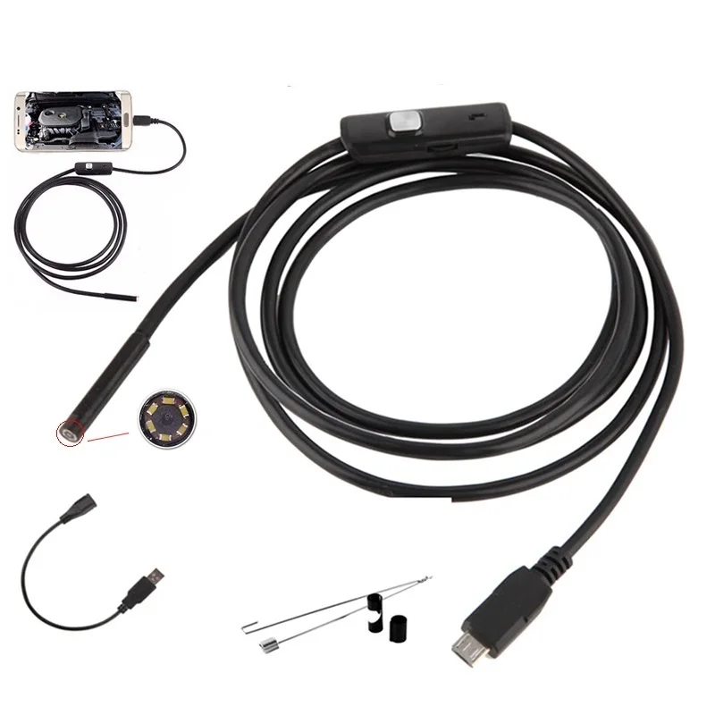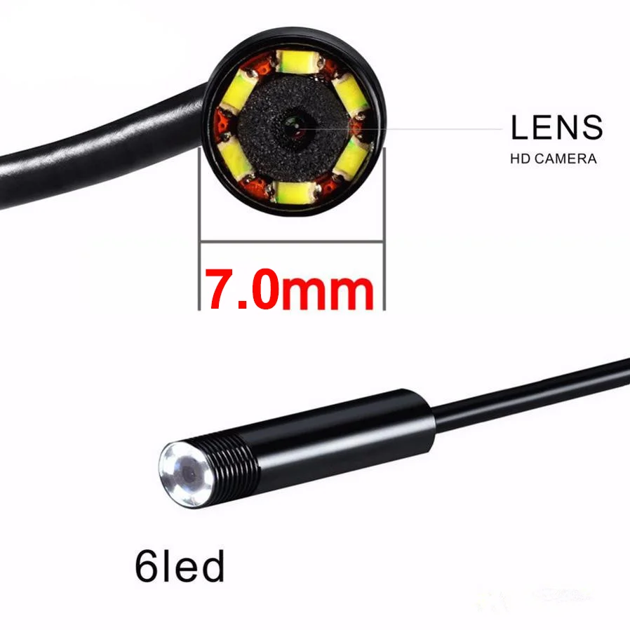 7,0 мм эндоскоп автомобильный Камера Usb смартфон на Android Cn вилка мягкой проволоки мини Камера Водонепроницаемый 6 светодиодный бороскоп для проверки
