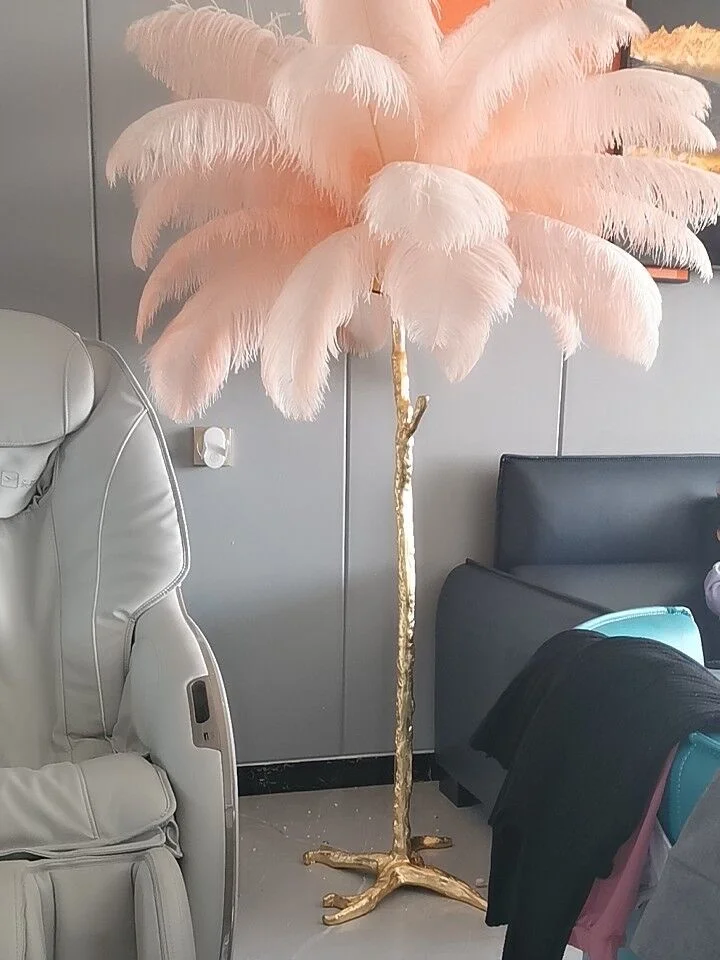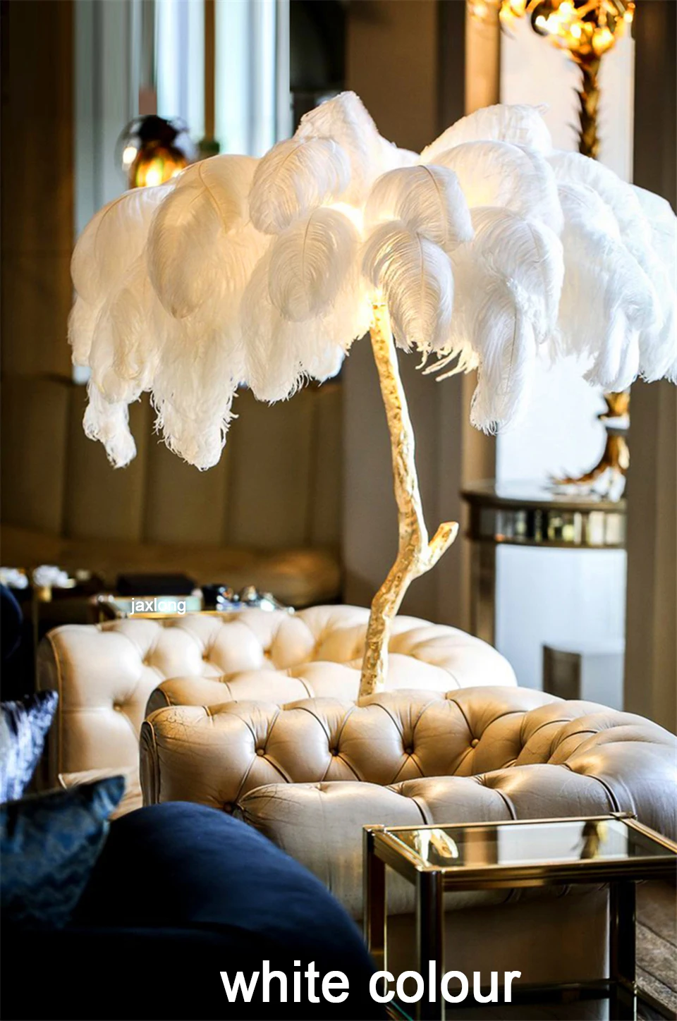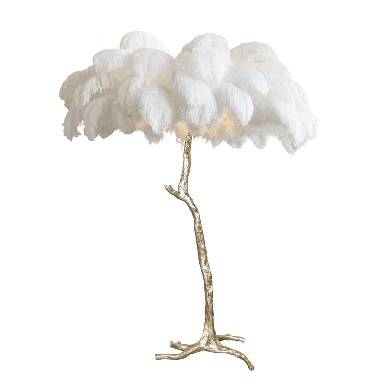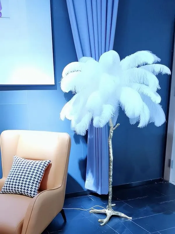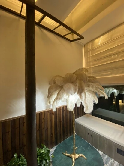 Современный роскошный торшер из страусиных перьев, медный, латунный, золотой, нордический стоячий светильник для гостиной, виллы, Tripot, декоративное освещение