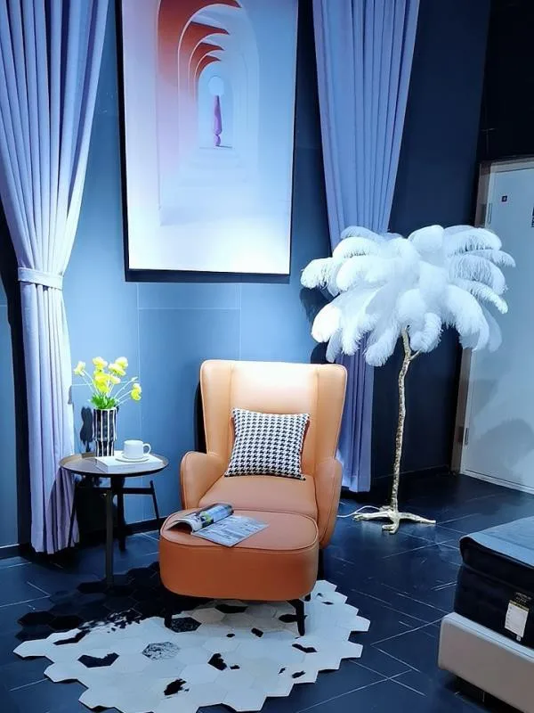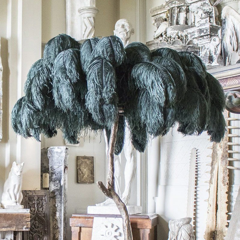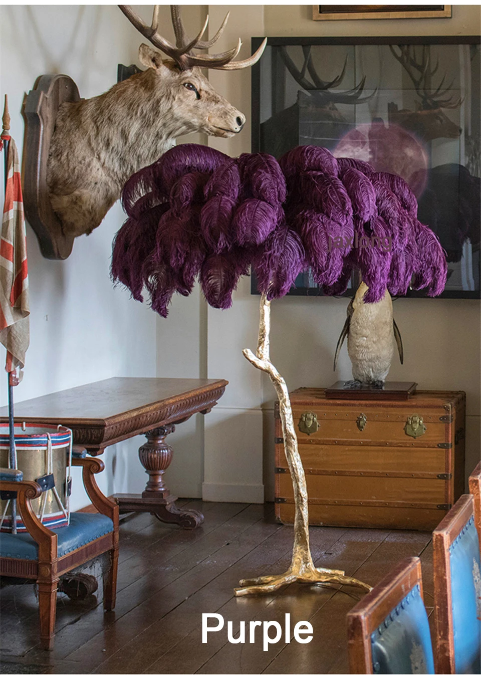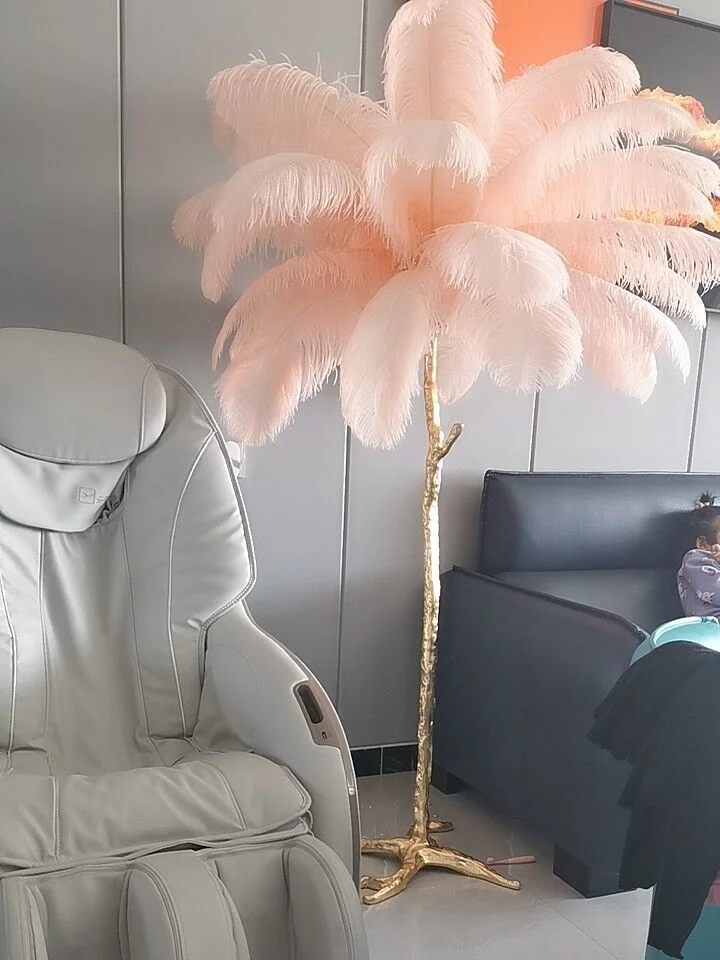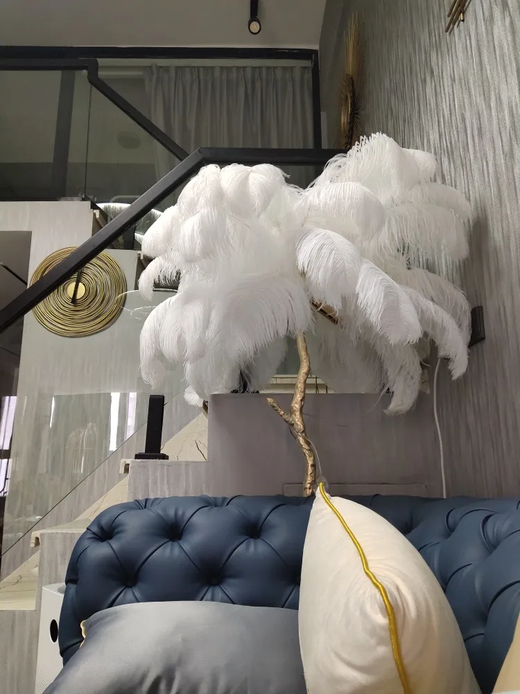 Современный роскошный торшер из страусиных перьев, медный, латунный, золотой, нордический стоячий светильник для гостиной, виллы, Tripot, декоративное освещение