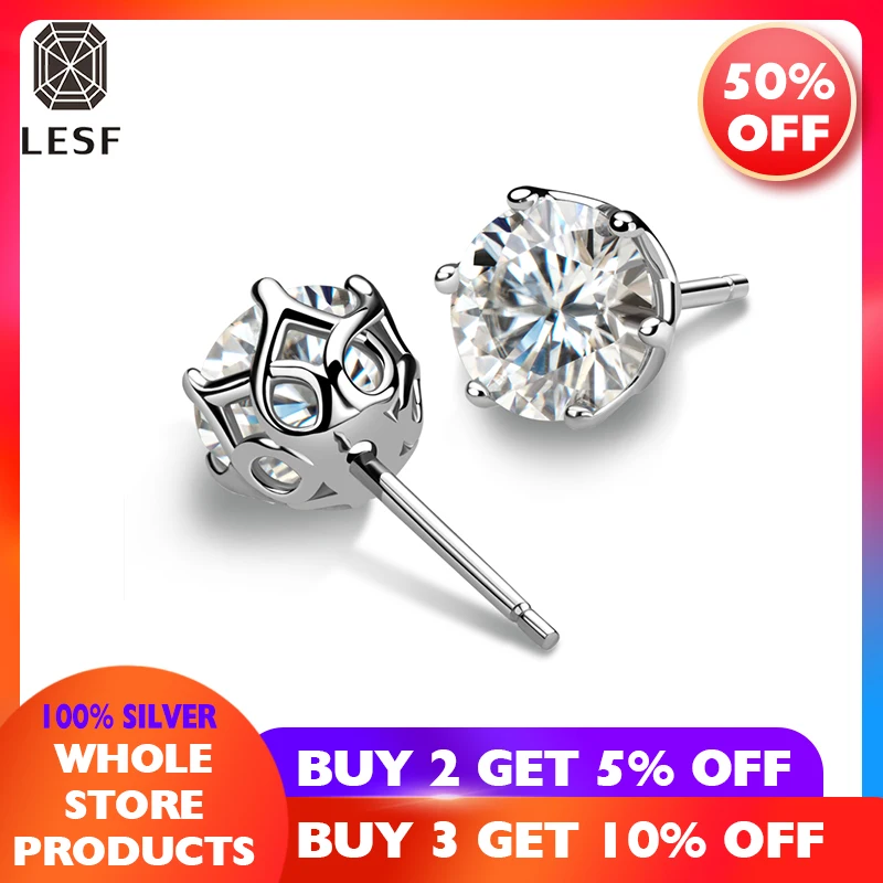 Женские серьги с муассанитом LESF, круглые серьги с бриллиантами из 925 пробы серебра, 1 карат, Подарок на годовщину