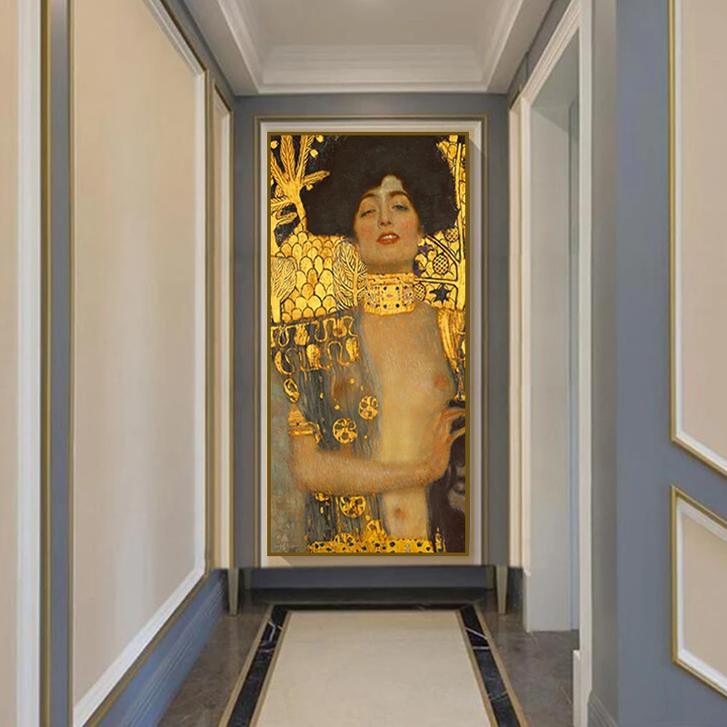 Классические настенные постеры и принты с изображением Джудит и голофернса Густава Климта, золотые картины для гостиной