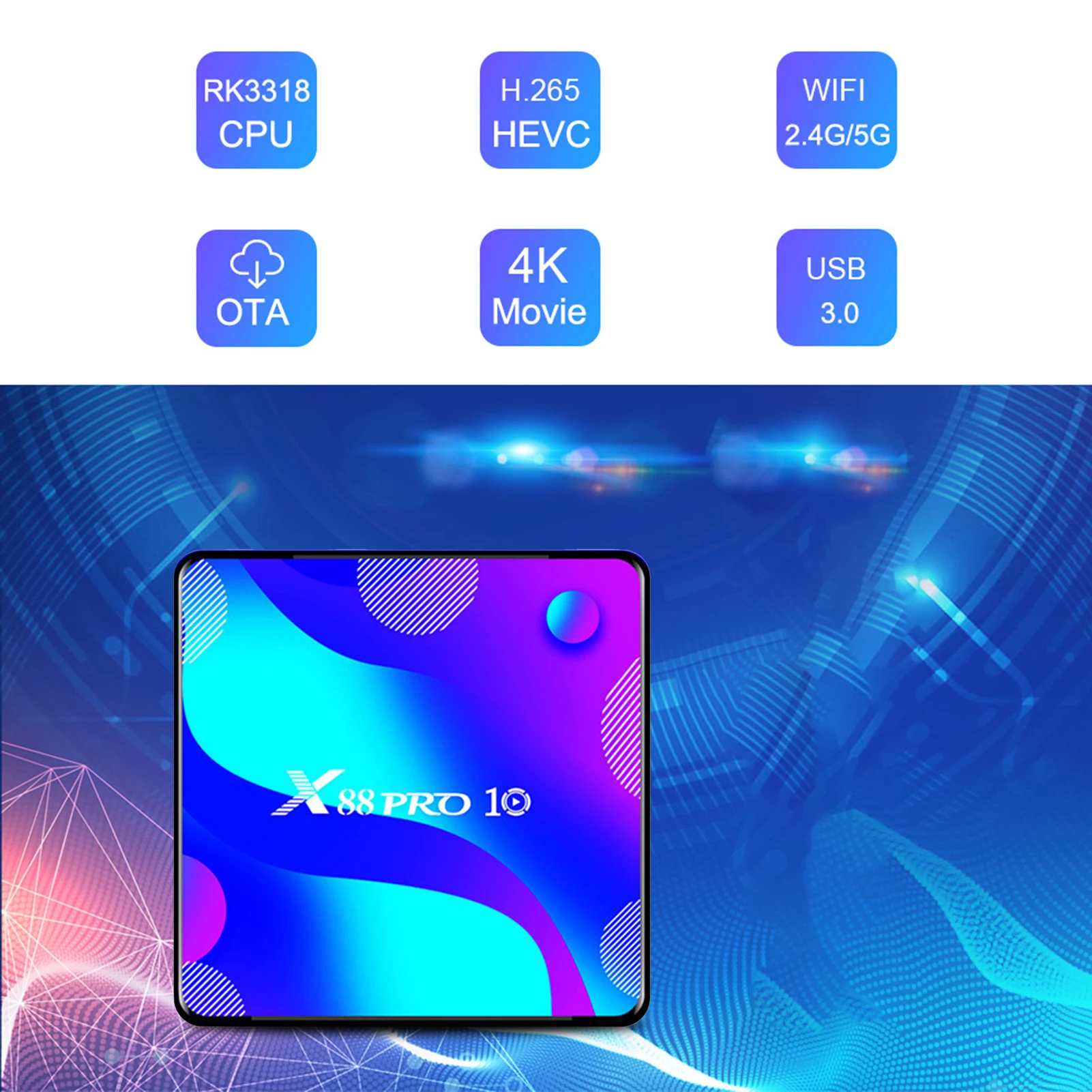 ТВ-приставка Android 10 X88 Pro 10 Wifi медиаплеер 4K H.265H.264 3D...