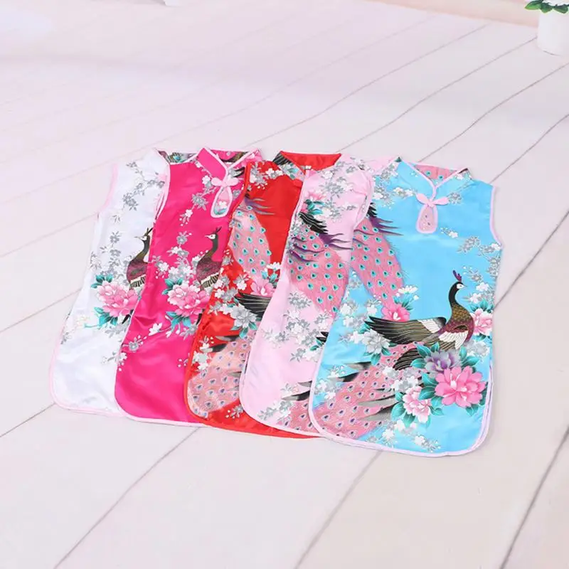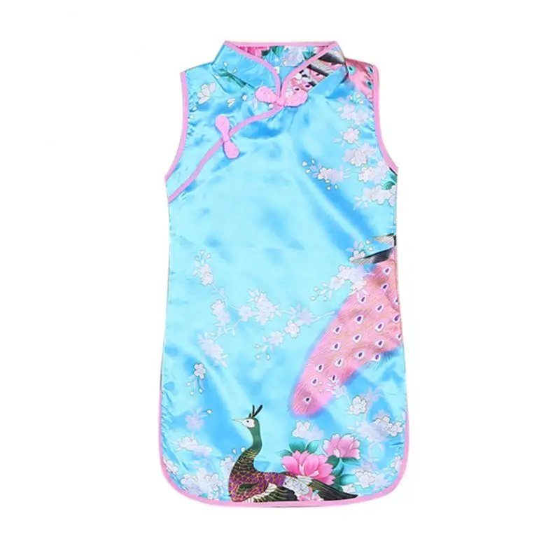 Детское шелковое платье-Ципао с воротником-стойкой, в китайском стиле