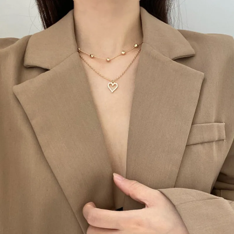 Женское Двухслойное ожерелье с подвеской в форме сердца