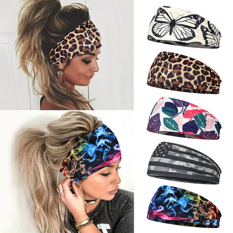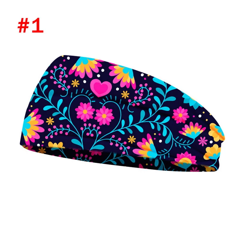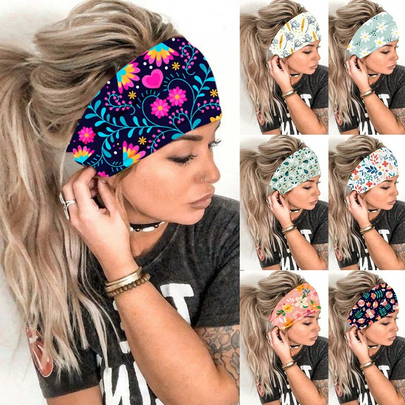 Тюрбан с цветочным принтом, эластичный спортивный, лента для волос для йоги, модный, из хлопчатобумажной ткани, широкий, для женщин, аксессуары для волос