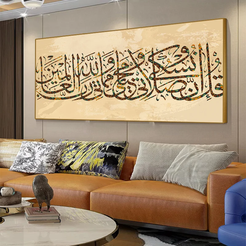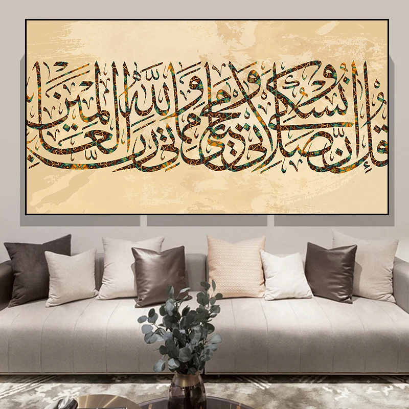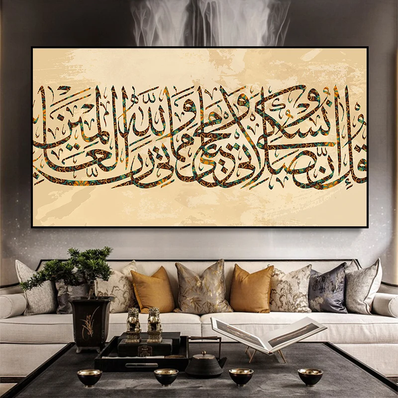 Золотистый плакат, мусульманская Библия, холст, картины Корана, Аллах, мусульманская Настенная картина для гостиной, Рамадан, мечеть, домашний декор