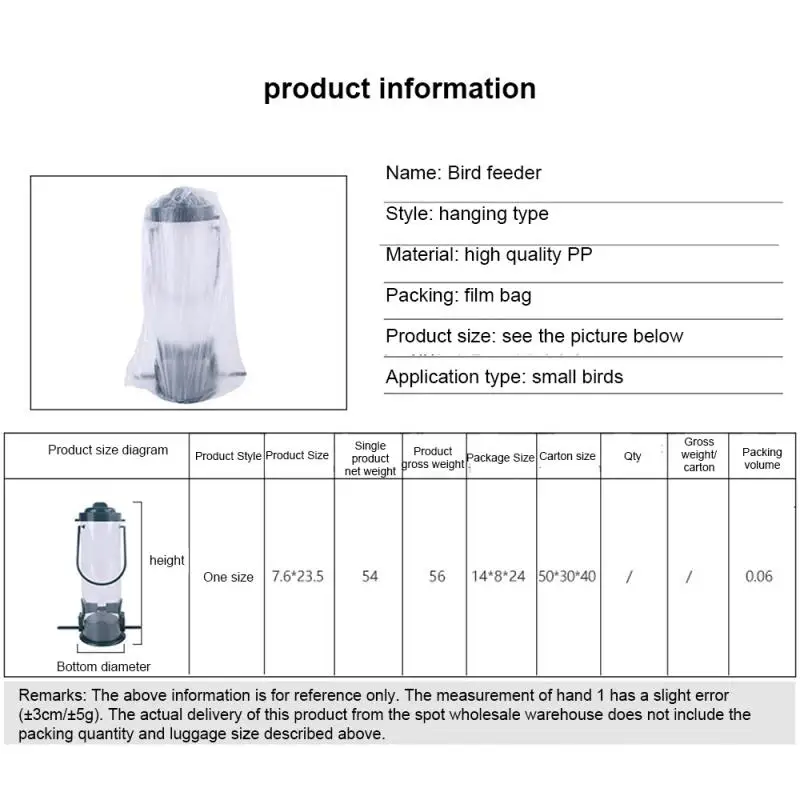 Package Included1*Bird feeder