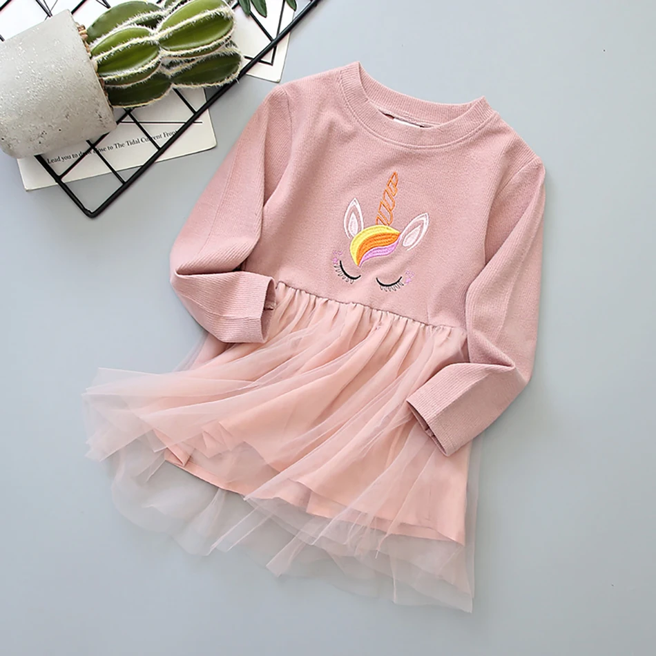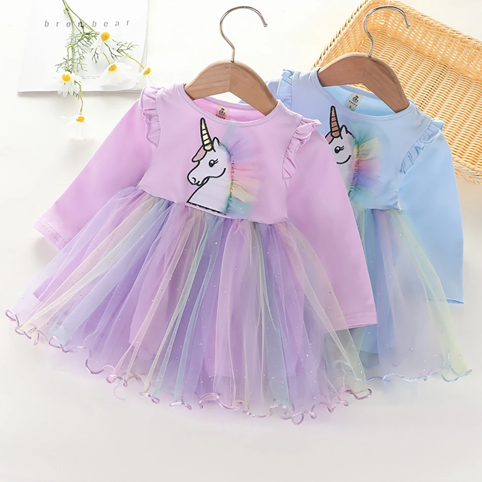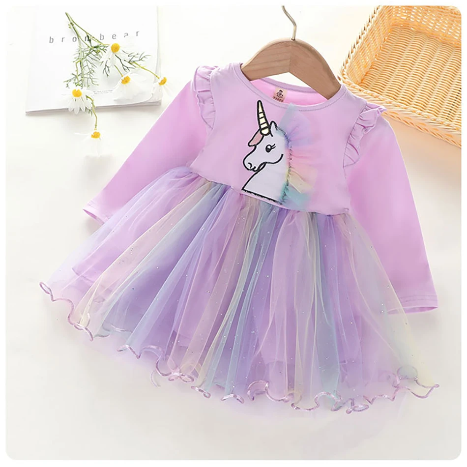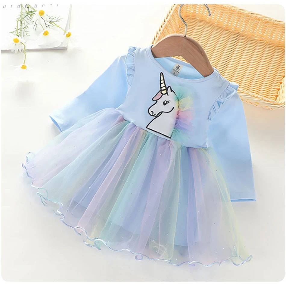 Милое платье принцессы с единорогом, весенне-осеннее детское платье...