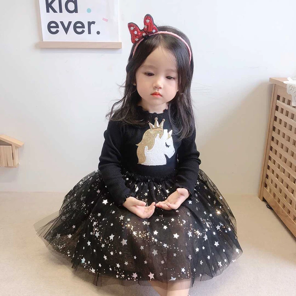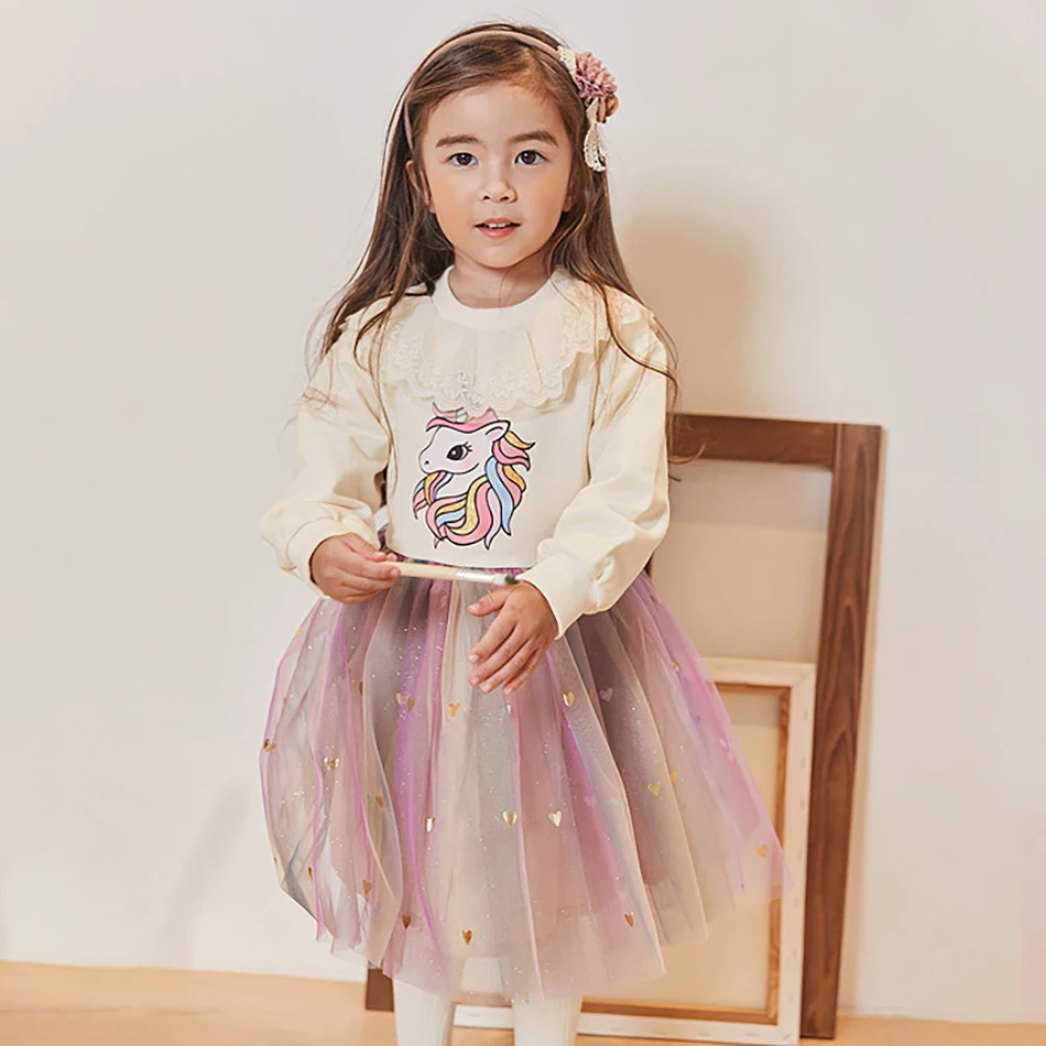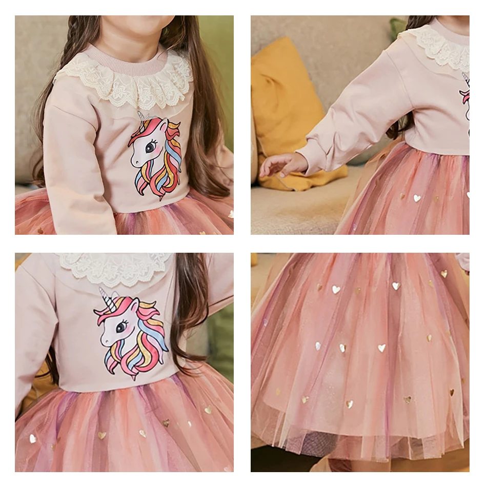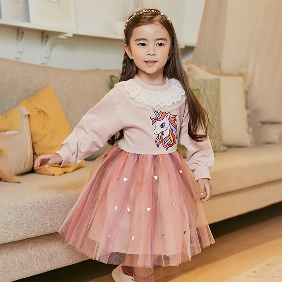 Милое платье принцессы с единорогом, весенне-осеннее детское платье...