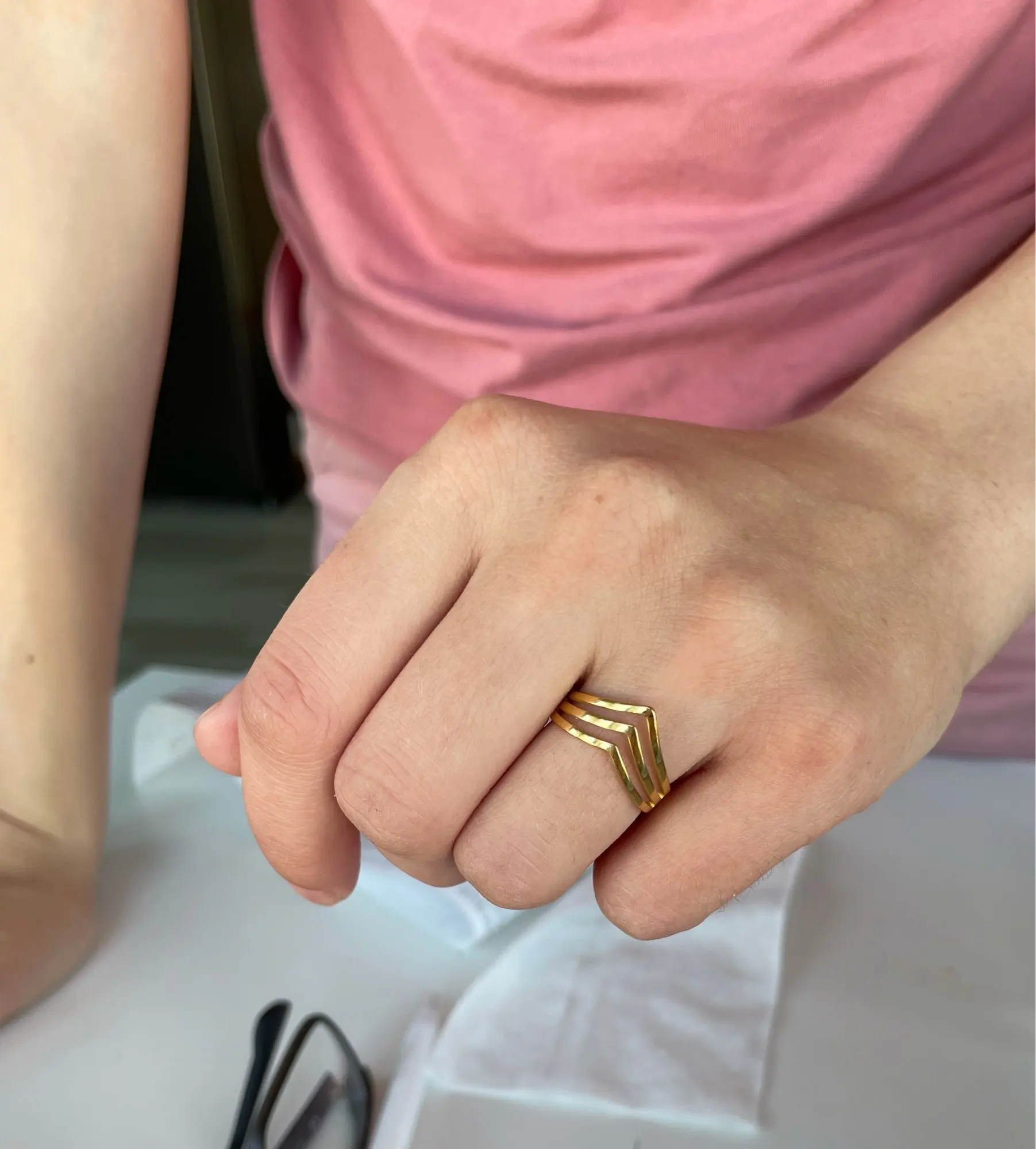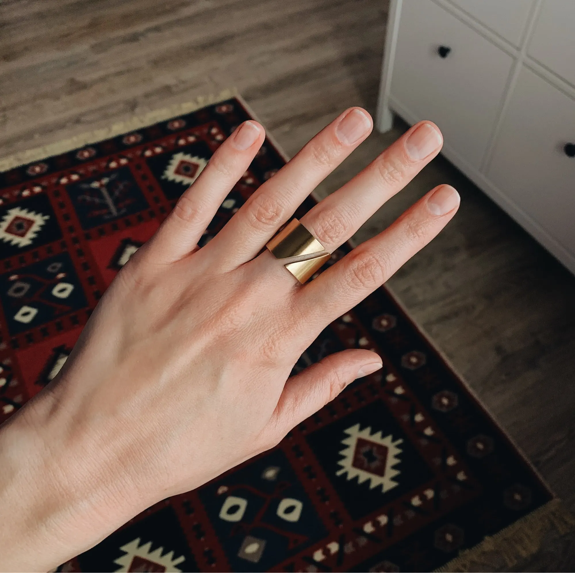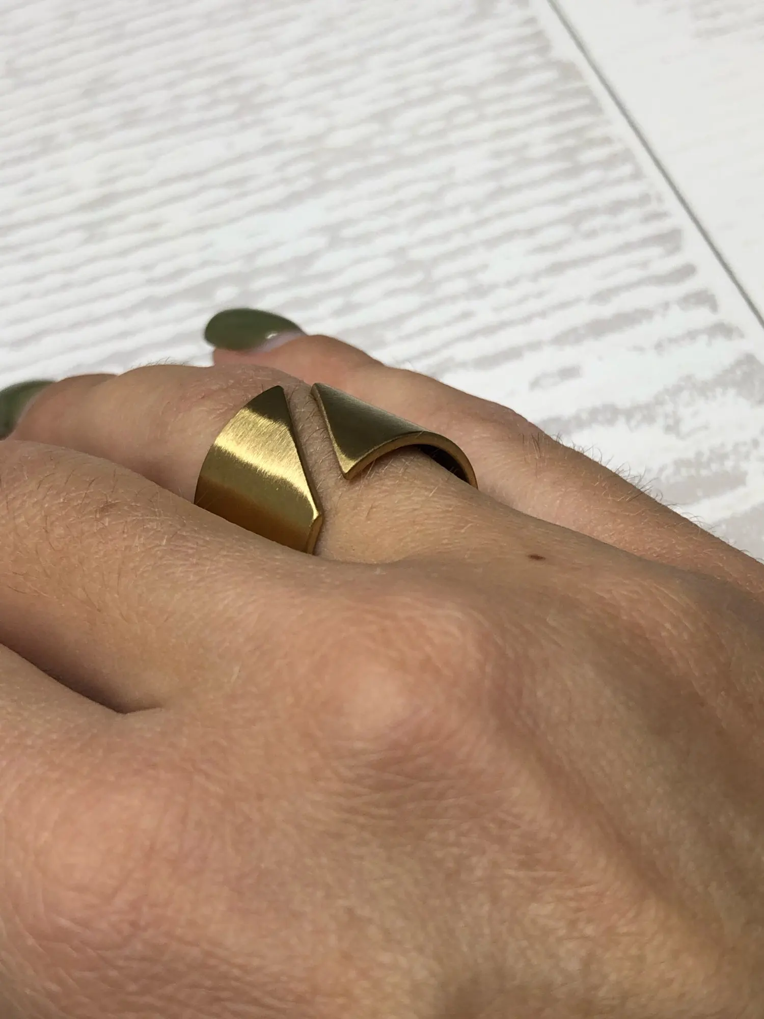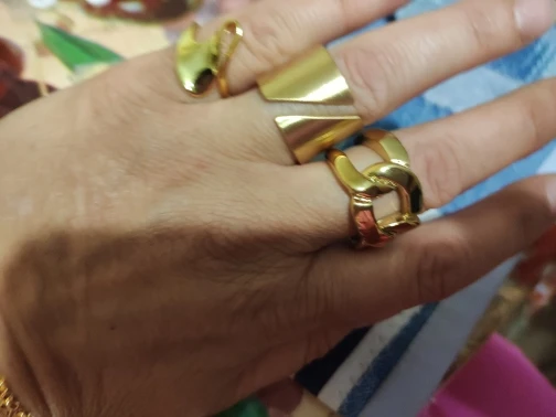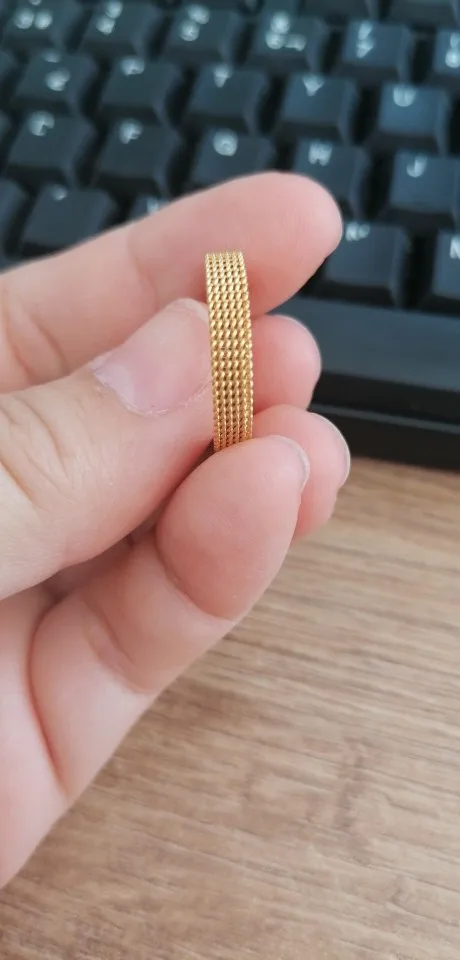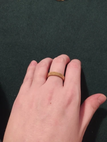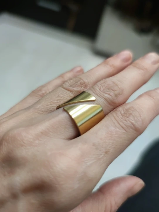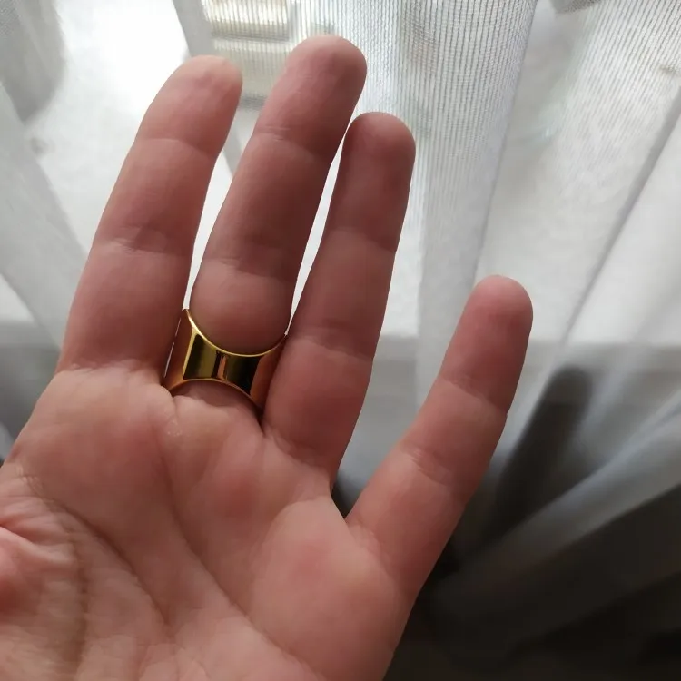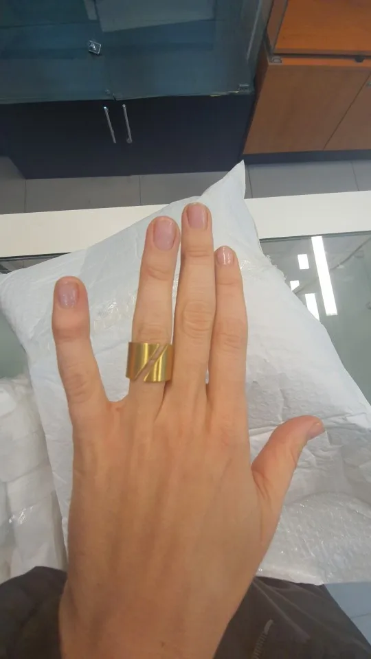 Оно невероятно крутое! Спасибо продавцу) Никак не могу налюбоваться! Надеюсь, прослужит долго и не потеряет внешний вид. 8 размер подошел на 18, как я и планировала носить. На пальцах, где размер 17, кольцо уже спадает.