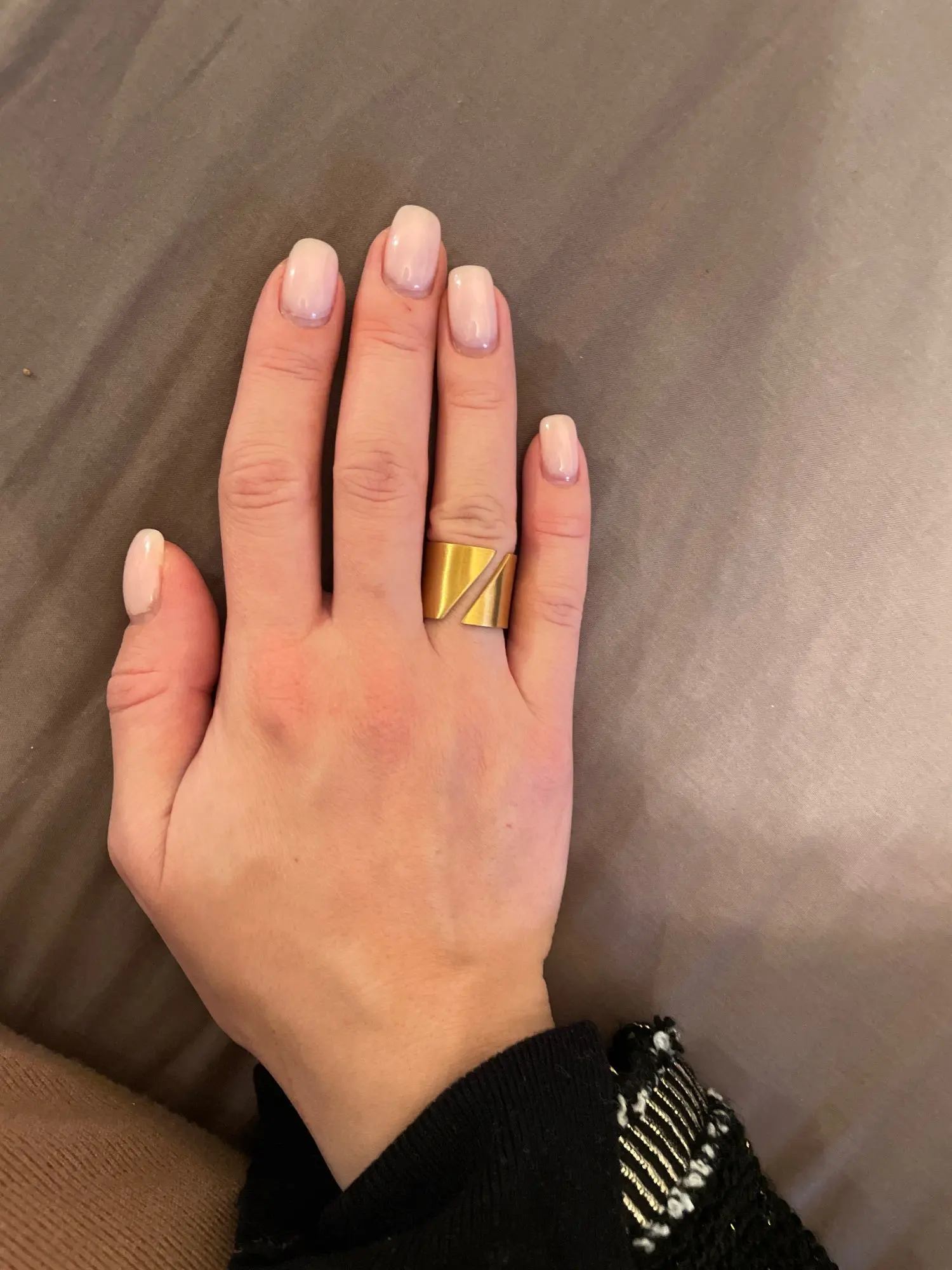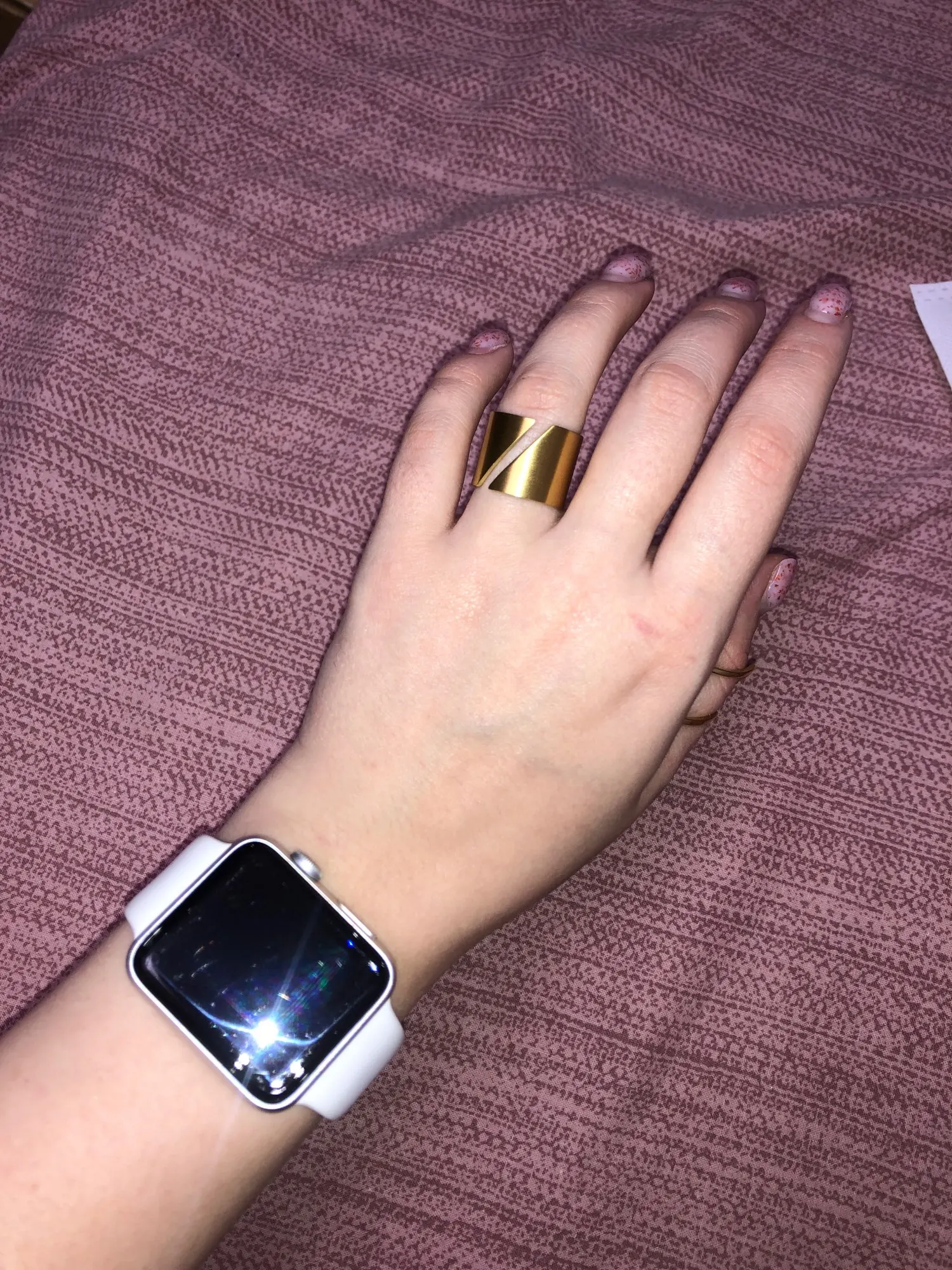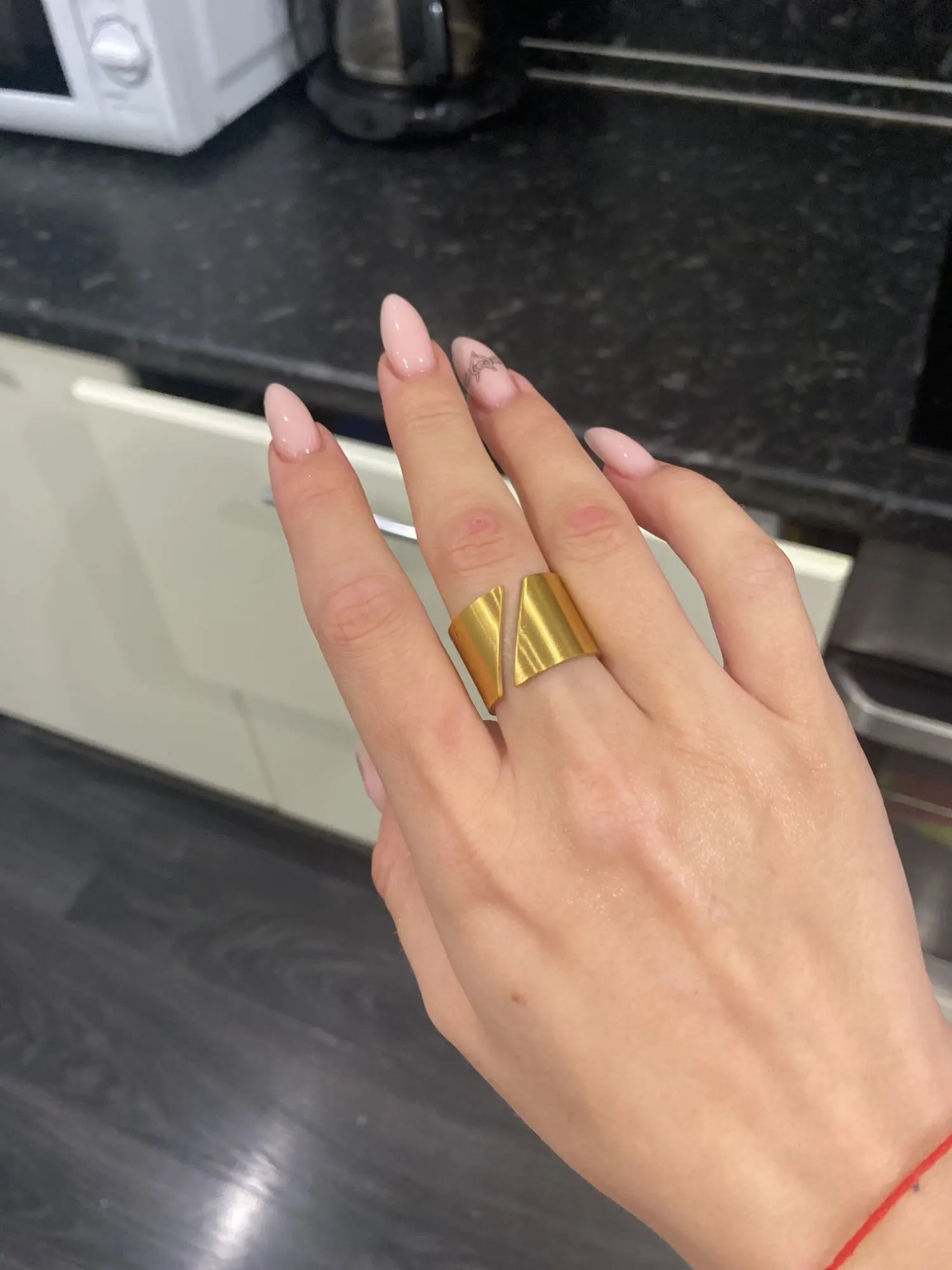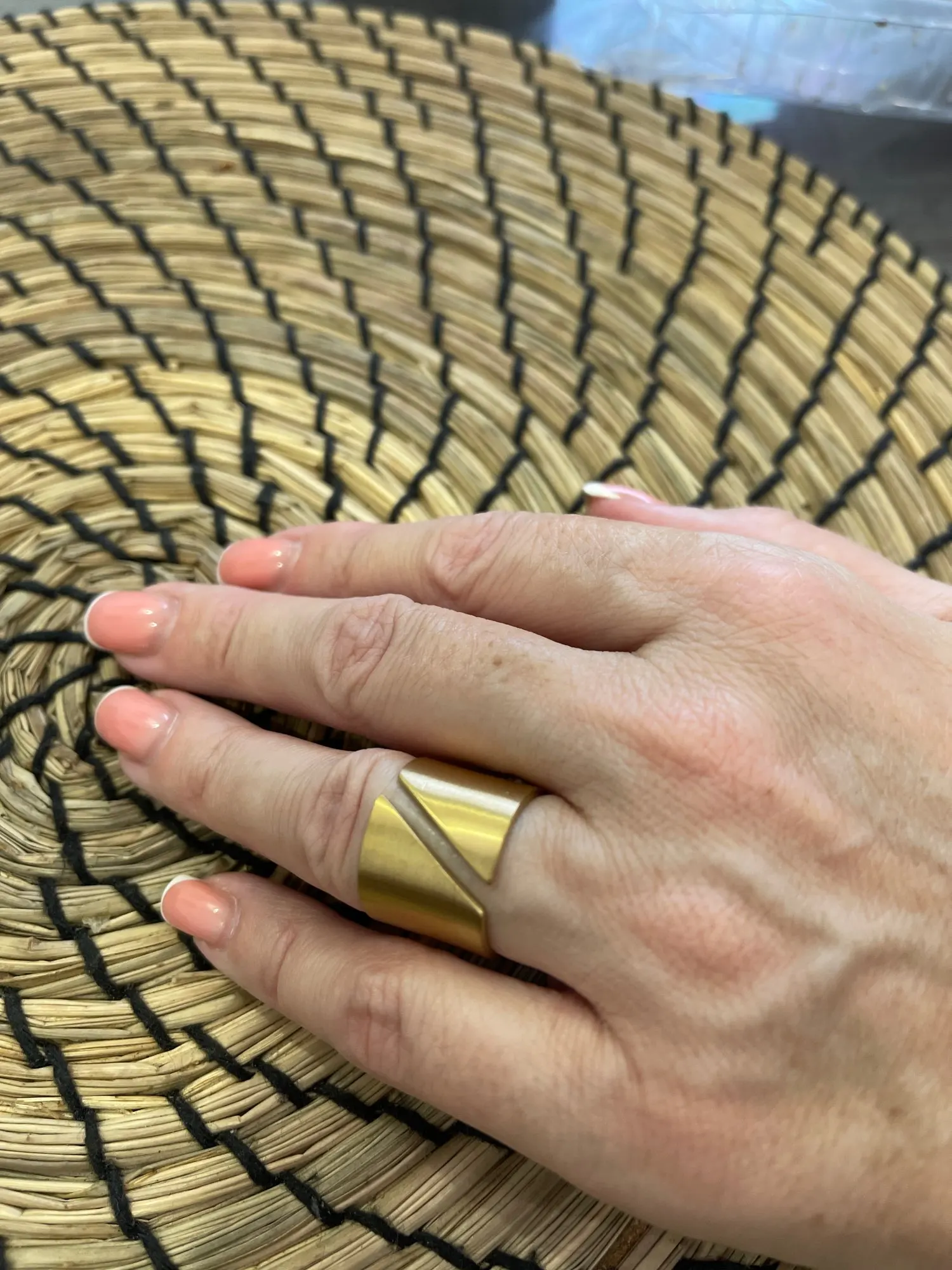 Оно невероятно крутое! Спасибо продавцу) Никак не могу налюбоваться! Надеюсь, прослужит долго и не потеряет внешний вид. 8 размер подошел на 18, как я и планировала носить. На пальцах, где размер 17, кольцо уже спадает.