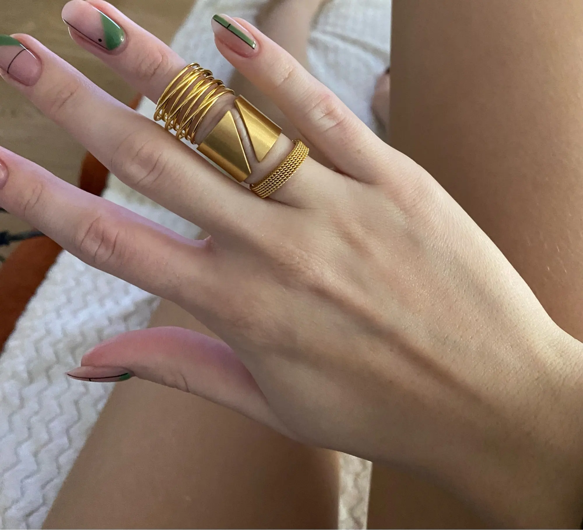 Кольцо женское, из нержавеющей стали, многослойное, широкое