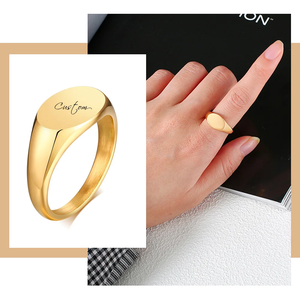 Кольцо-печатка женское овальное с маленьким мизинцем