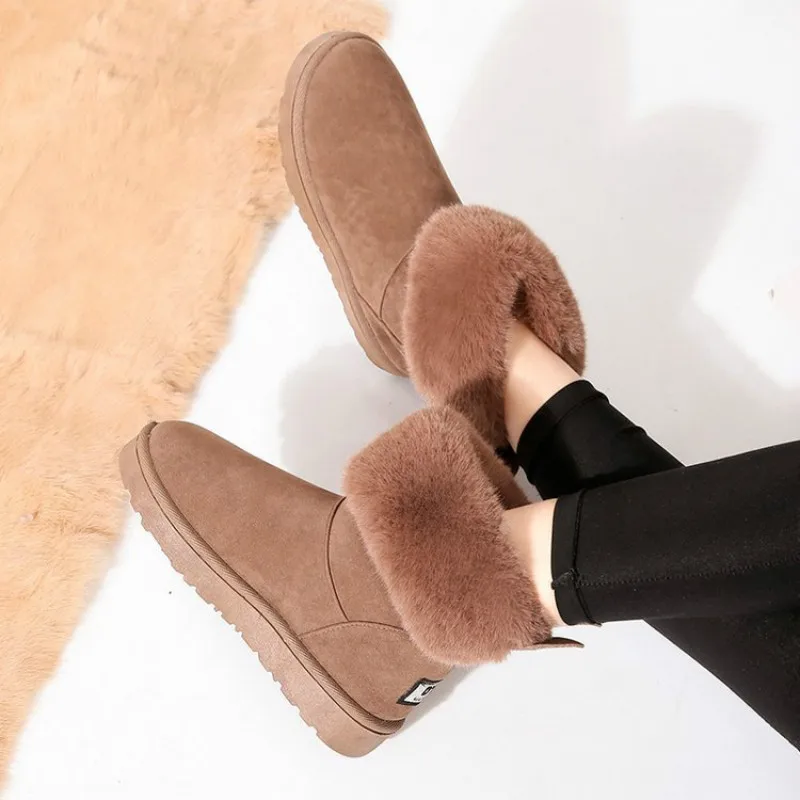 Женские зимние сапоги для снежной погоды 2020, уличная теплая обувь с мехом, женские милые однотонные повседневные сапоги из флока без застежек Стразы