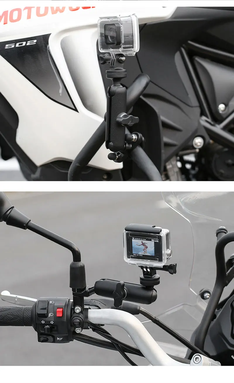 360 ° Мотоцикл Велосипед Камера держатель грипса на руль для Dirt Pit Bike зеркало кронштейн 1/4 металлическая подставка скутер, способный преодолевать броды для экшн-Камеры GoPro Hero 9/8/7/6/5/4/3 + действие Камера s аксессуар