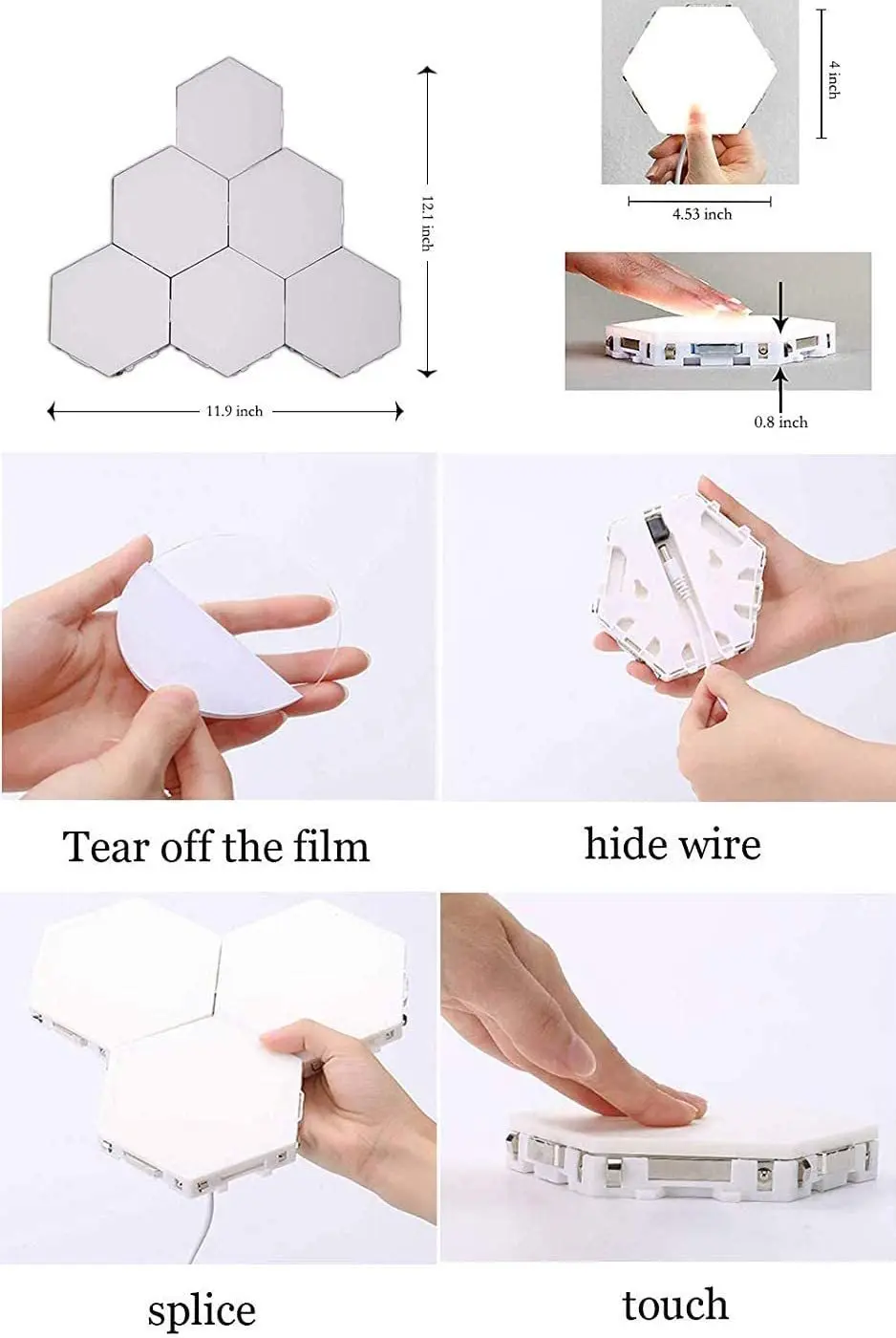 Светодиодный модульный светодиодный светильник сенсорного типаШестиугольный модульный светильник s соединяется с помощью магнитного притяжения, который может использоваться как настенный светильник s, с сенсорным светильник и режимом тушения, который может быть выключен и включен с помощью сенсорный светильник или простой ход.