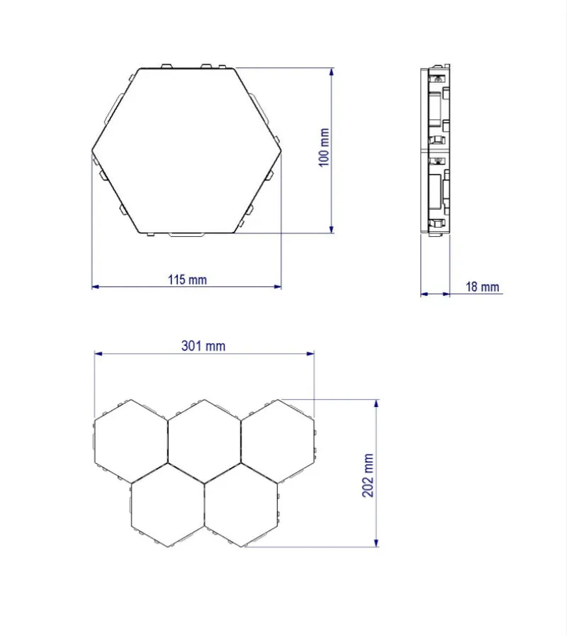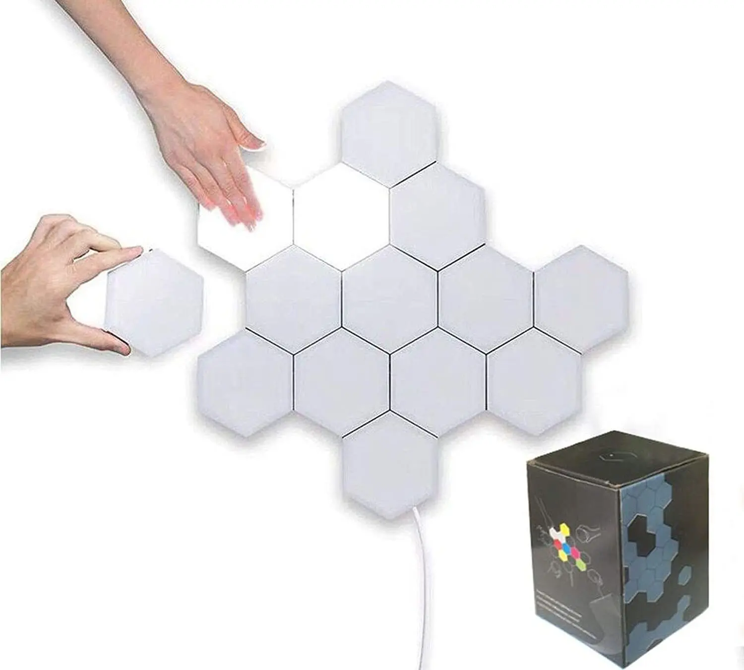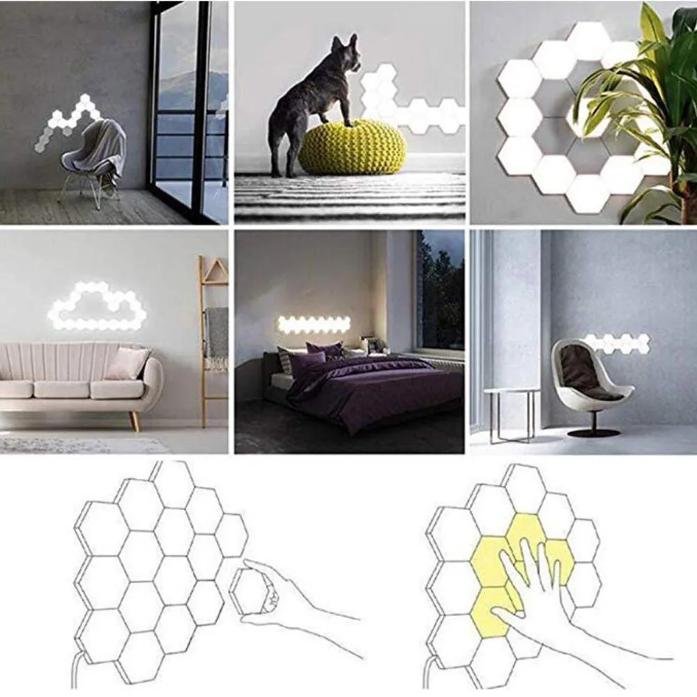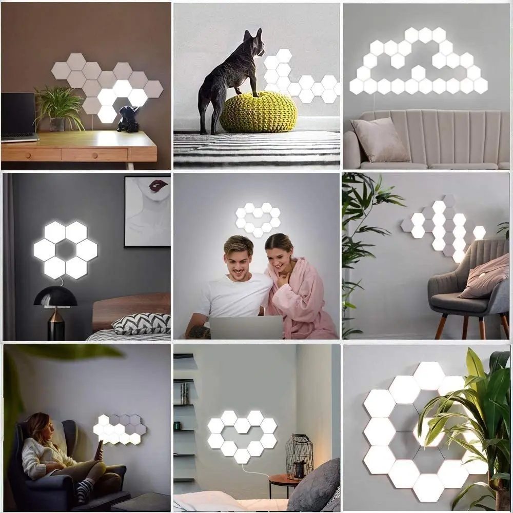 1. Сенсорный настенный светильник: креативный модульный сенсорный настенный светильник, маломощный светодиодный светильник, панель с емкостным датчиком приближения, легко обнаруживает ваше тело и легко включается или выключается. Используйте шестиугольный флоппи-диск для создания любой структуры, которая удовлетворяет ваши потребности, затем включите и выключите, прикоснувшись к переключателю. Эта конструкция позволяет эффективно скользить к месту, где требуется освещение, тем самым превращая стену в произведение искусства.