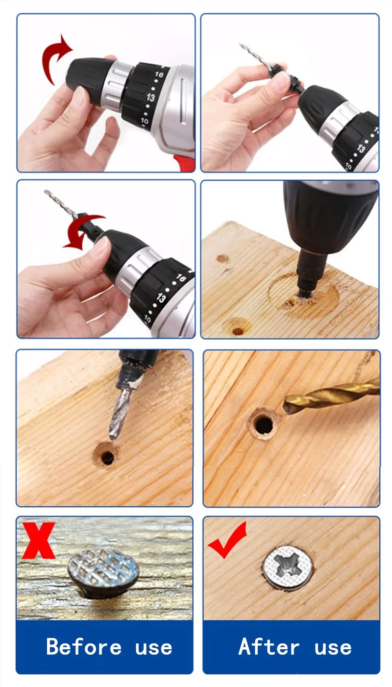 Шестигранная ручка HILIXUN, титановое потайное спиральное сверло дл...