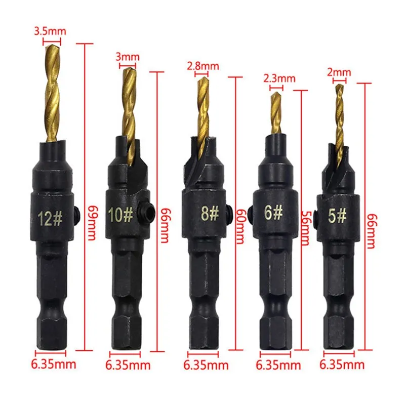 Набор сверл для зенковки, комплект из 5 насадок для деревообработки...