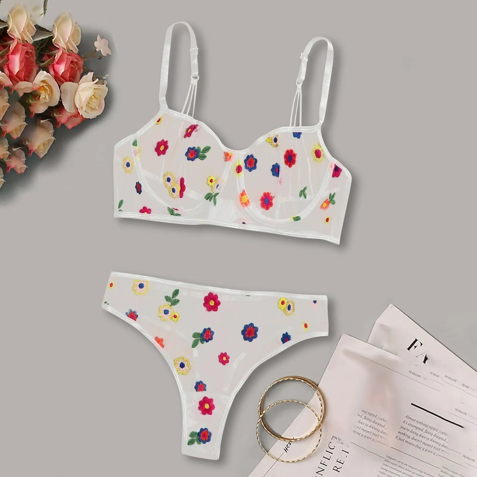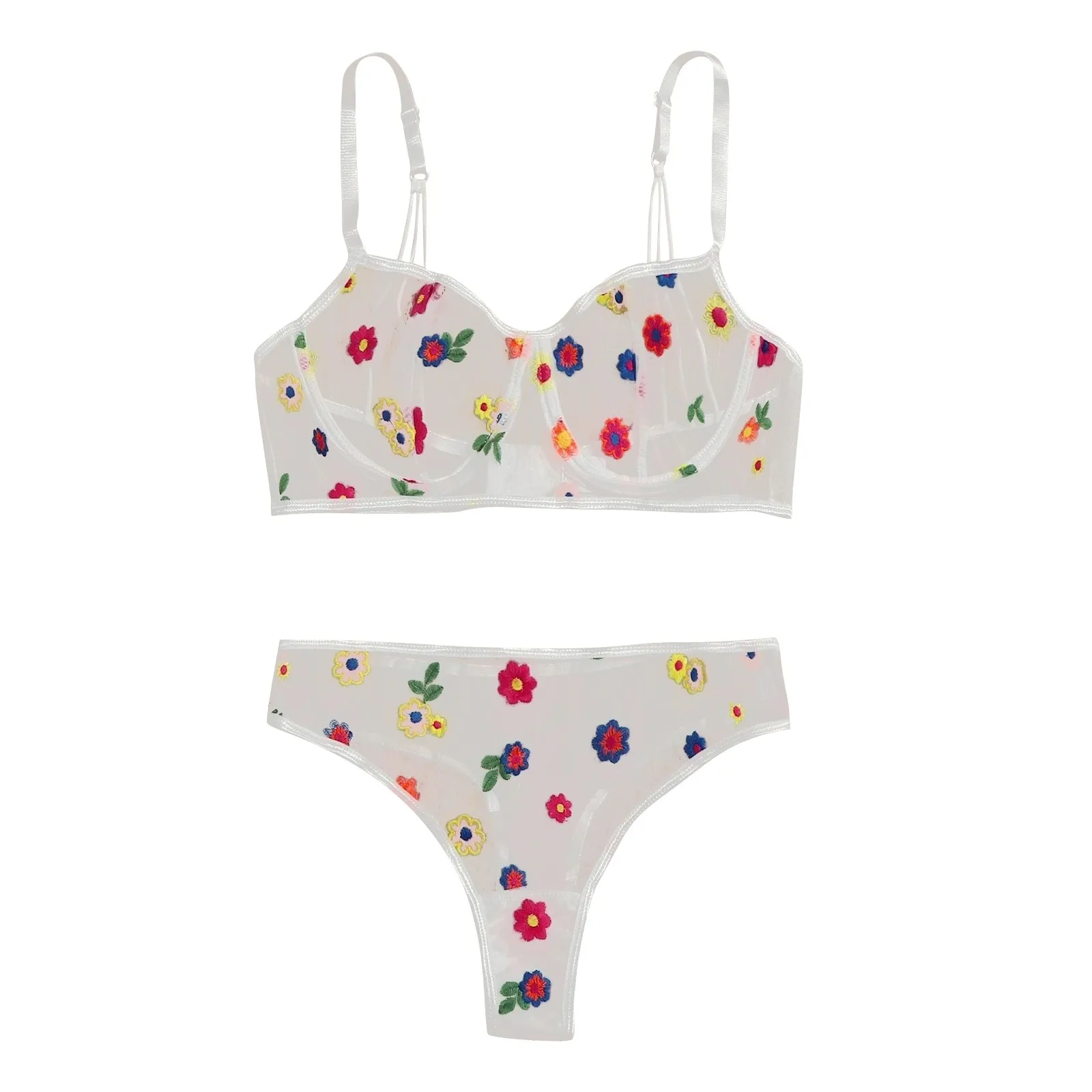 Экзотические комплекты с цветочной вышивкой, женское нижнее белье, ...