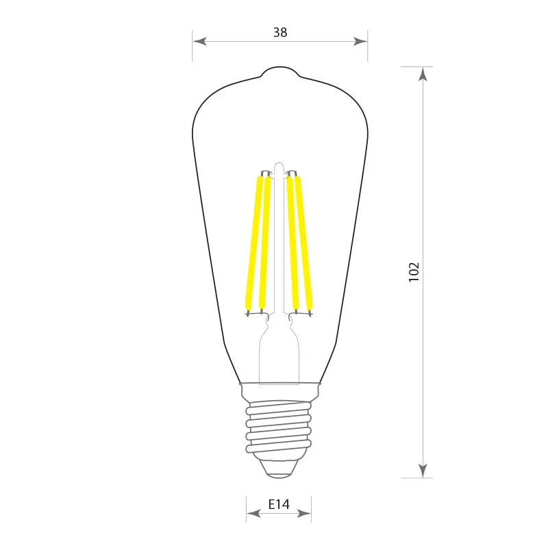 Светодиодная лампа ST38-GOLD мощностью 4 Вт.с цоколем E14 предназначены для установки в дизайнерские люстры для декоративной подсветки имеет длину 102 мм и диаметр 38 мм вместо таких же ламп накаливания .