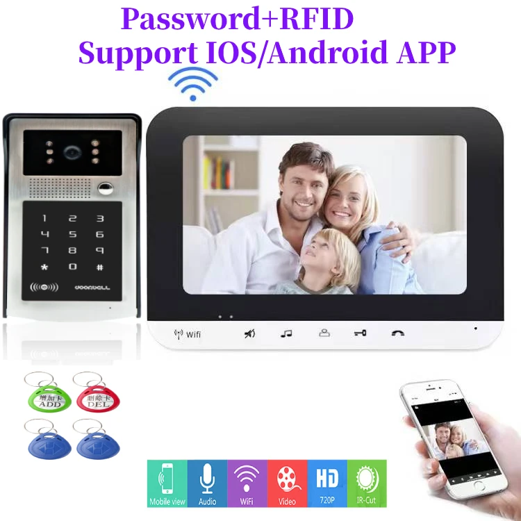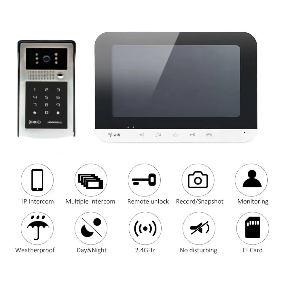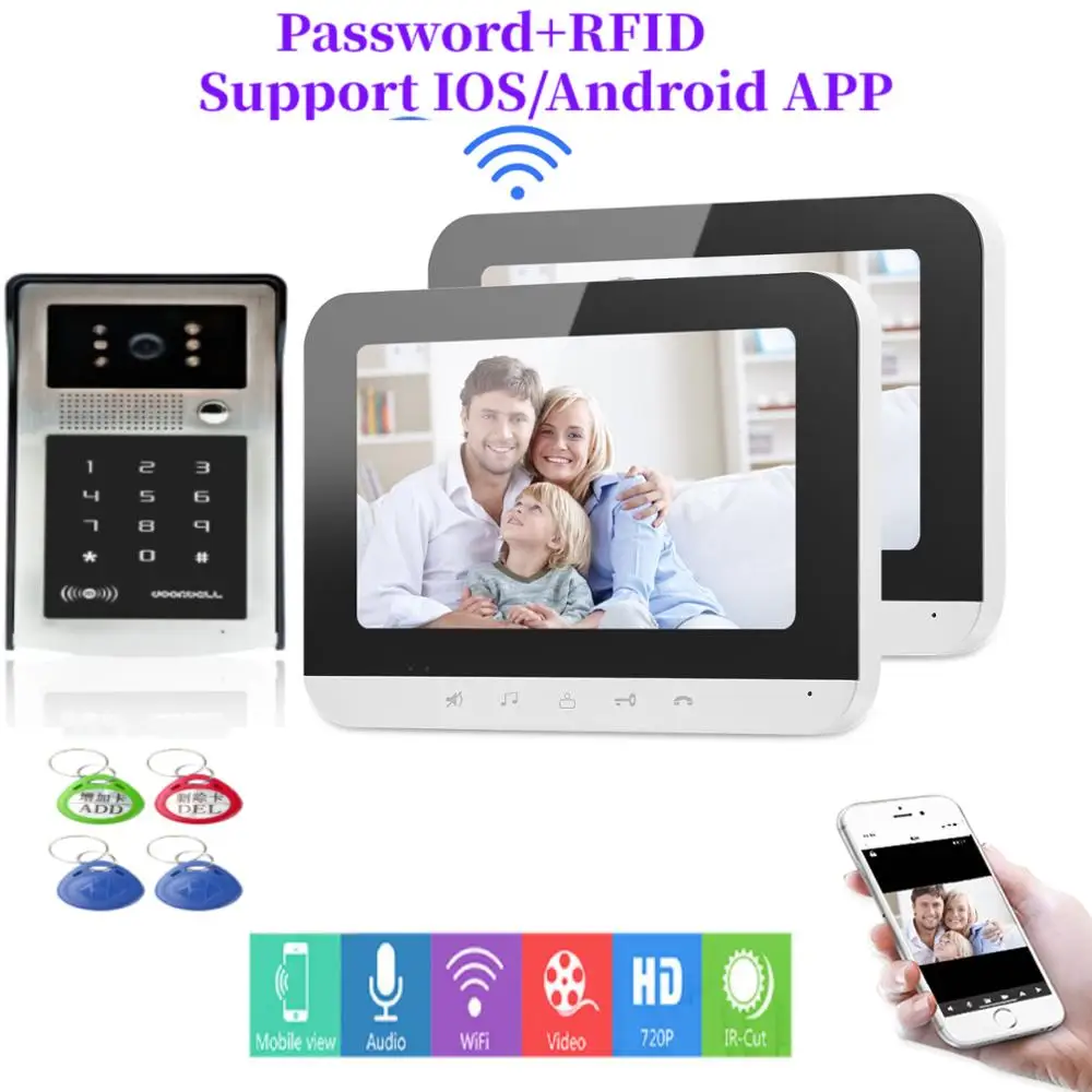 7 дюймов Wi-Fi IP видео-телефон двери внутренной связи записи Системы домашнего видео глаз пароль дистанционная разблокировка ID карты доступа Управление дверной Звонок