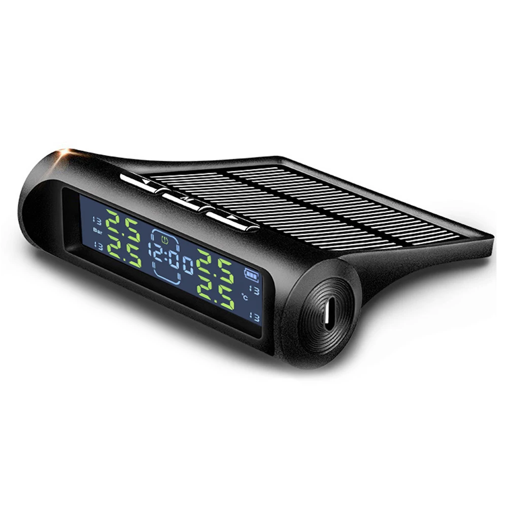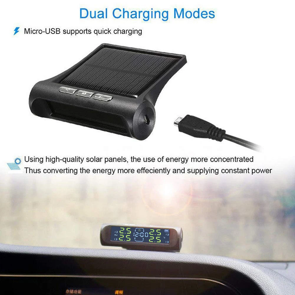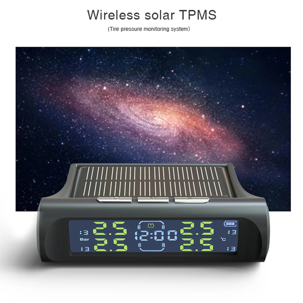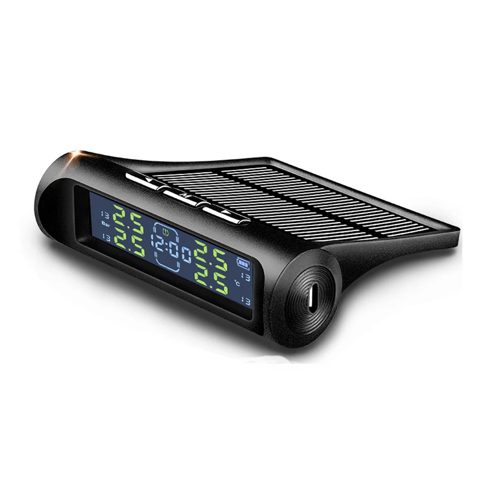 AN-01D 2 в 1 автомобильные солнечные часы TPMS с ЖК-дисплеем, автоматическая система контроля давления в шинах и температуры с 4 датчиками