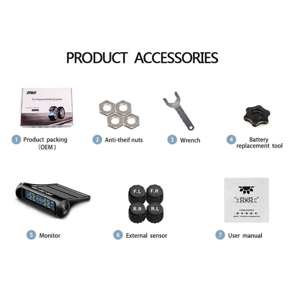 AN-01D 2 в 1 Автомобильный Солнечный TPMS часы ЖК-дисплей Авто шины давление температура мониторинга сигнализация с 4 датчиками Описание: Функция мониторинга в реальном времени: независимо от того, находится ли транспортное средство за рулем или находится в неподвижном состоянии, можно контролировать состояние давления и температуры каждой шины, а статус шины находится под контролем. Функция сигнализации высокого/низкого давления: когда давление в шинах выше или ниже установленного значения, система будет оповещать. Функция сигнализации о утечке воздуха: если посторонний предмет проникает в шину, чтобы вызвать утечку воздуха, система будет оповещать. Функция сигнализации высокой температуры: когда температура шин превышает 80 ℃, система будет оповещать. Ультра-низкое энергопотребление функция: чрезвычайно оптимизированный режим работы, срок службы батареи системы до 5 лет. Характеристика: Высокоэффективная солнечная панель, супер срок службы батареи. Встроенная металлическая литиевая батарея большой емкости, бесперебойный срок службы батареи в пасмурные дни. Точно Отслеживайте стабильность давления в шинах на протяжении всего процесса. Высокоточный жидкокристаллический ЖК-дисплей. Громкий звуковой сигнал. Доступны несколько блоков давления в шинах. Дальний прием, стабильный сигнал. Поддержка обмена позициями шин. Система обнаружения давления в шинах. Сигнализация давления в шинах, солнечная зарядка, беспроводная передача. Монитор 4 шины одновременно, цветной экран дисплея. Встроенный высокоточный чип часов, формат 12/24 часов. Предотвращает проблемы до их возникновения: предотвращает плоские шины, утечки воздуха, балансирует давление воздуха, экономит топливо и уменьшает износ. Два типа датчиков: внешние, встроенные, готовые к использованию, четыре колеса с одинаковым дисплеем Внешний датчик Срок службы батареи составляет около двух лет, сменный (установлен на клапанном сердечнике). Поверхность корпуса имеет антикоррозийное покрытие. Используйте шестиугольные гайки против кражи патента. Использование уникального внешнего механизма герметизации и вентиляции шин патентованный силиконовый интегрированный формовочный механизм для предотвращения утечки воздуха Внутренний датчик Срок службы батареи составляет около пяти лет, и аккумулятор может быть заменен (Замените сердечник клапана оригинального автомобиля и сбалансируйте его после установки.) Принять авиационный дорожный сплав Материал сопло. Аккумулятор из Японии. Корпус изготовлен из нейлонового химического волокна для предотвращения коррозии. Между воздушным соплом и датчиком используется регулируемое Угловое соединение для обеспечения того, чтобы угол регулировался, чтобы быть полным с краем паза колеса во время установки. Спецификация: Тип датчика: внутренний, внешний (опционально) Время срабатывания сигнализации с датчиком связи: ≤ 10 мин Модель аккумулятора: CR2450HR (550mAh) Радиочастота: 433,92 ± 0,1 МГц Средний рабочий ток без радиочастотного излучения: ≤ 1μA Максимальный рабочий ток радиочастотного излучения: ≤ 15 мА Высокочастотная Передающая Мощность: 7 ~ 9 дБм при 50 Ом Высокая частота метод модуляции: FSK (9,6 кбит/с) Низкочастотная частота приема: 125 ± 5 кГц Низкая частота режим приема сигнала: ASK (3,9 кбит/с) Чувствительность приема низкочастотного сигнала