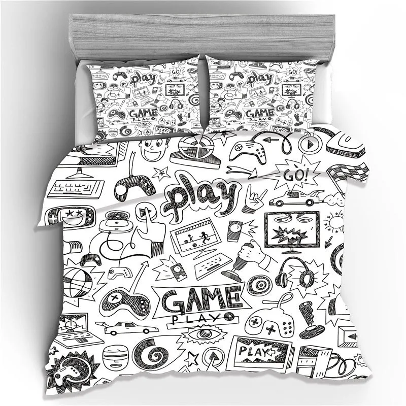 Комплект постельного белья для игровых игр, белый и черный, с мульт...