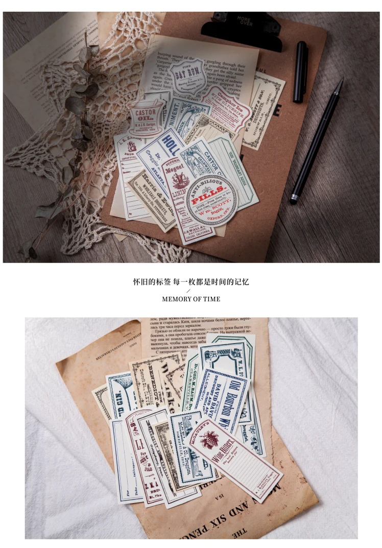 60 шт., антикварные старые этикетки, материал, бумага, дневник, планировщик, Крафтовая бумага, скрапбукинг, винтажные декоративные поделки сделай сам, фотоальбомы