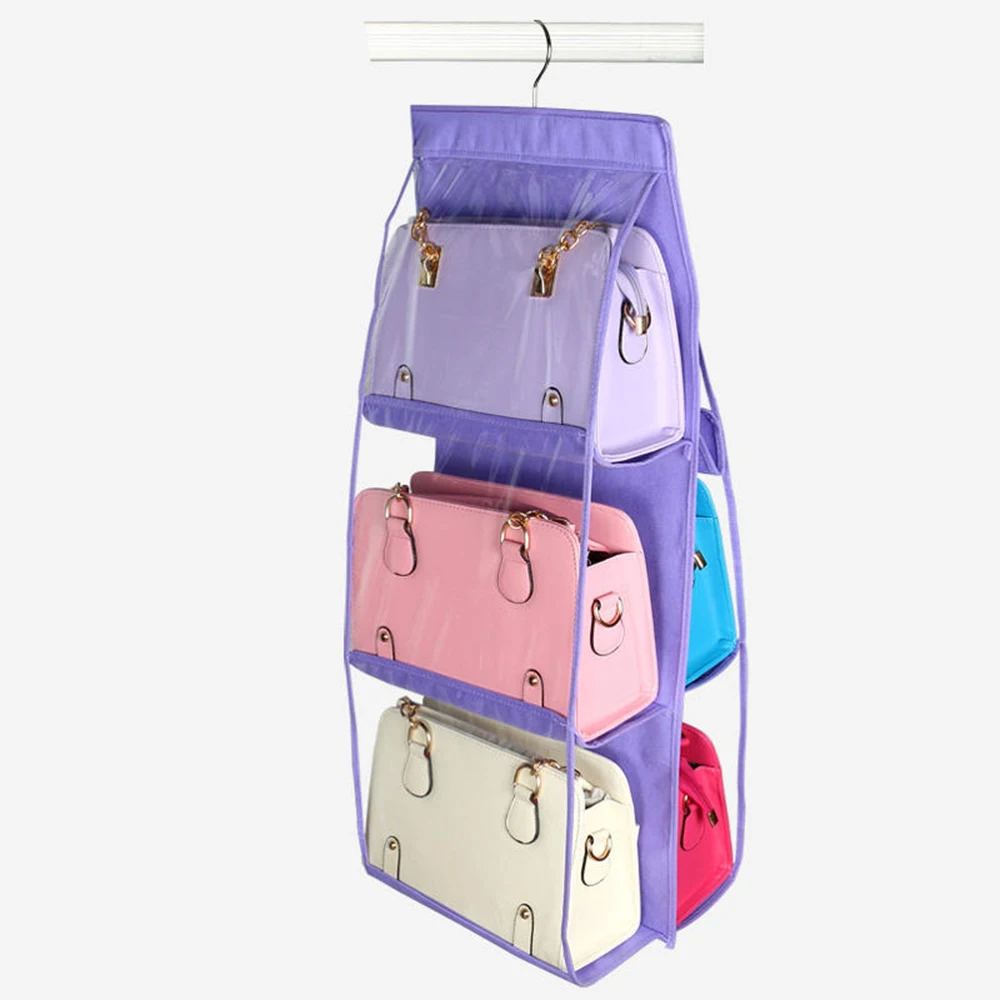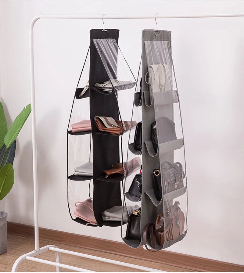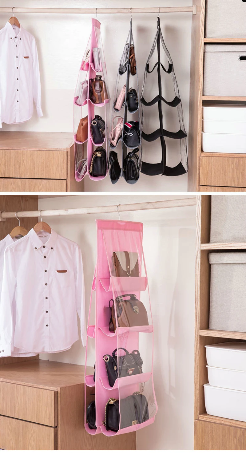 1. Изготовлен из ткани Оксфорд и ПВХ, тонкая работа. Нетоксичный, моющийся и легко чистится.2. С вешалкой для пальто это станет отличным недорогим хранилищем. Держите вашу сумочку аккуратной и чистой.3. Прозрачный карман, облегчает поиск нужной сумки.4. Может висеть в гардеробе или на стене, даже в задней части любых дверей.5. Идеально подходит для дома, спальни, гостиной, ванной комнаты, учебы, кухни, офиса и так далееПолучите дополнительное хранилище с помощью этого органайзера для сумки с 6 отделениями.