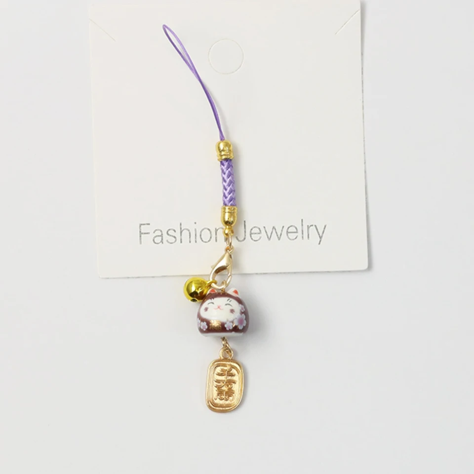 Милый ремешок для смартфона Манеки Неко, брелок для ключей от автомобиля, украшение золотым колокольчиком, котом сакуры, брелок для ключей, подарки для пар