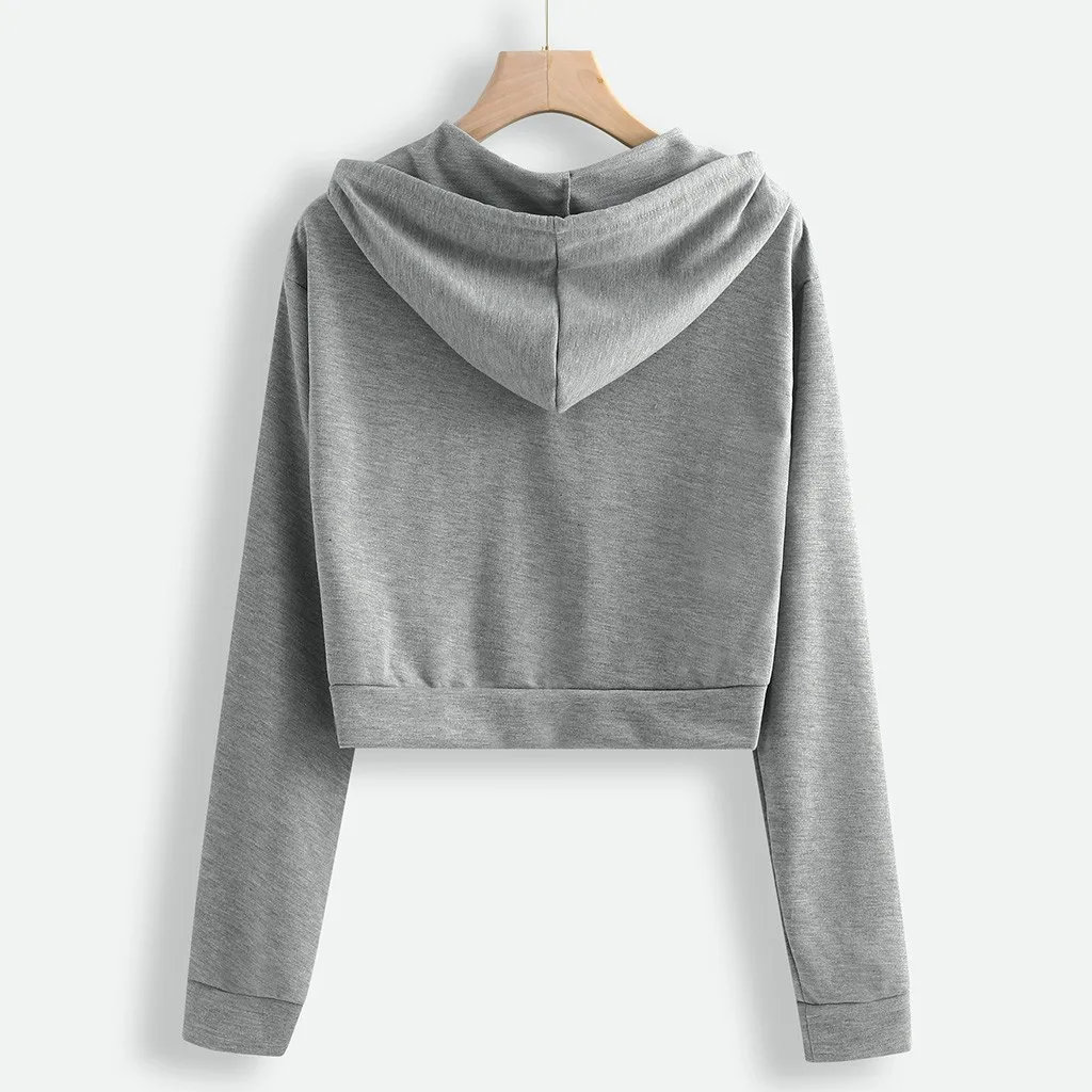Женская Повседневная Толстовка с капюшоном, Однотонная рубашка с длинным рукавом и карманами на молнии, свитшот с капюшоном, модная толстовка, женский укороченный топ, пуловеры