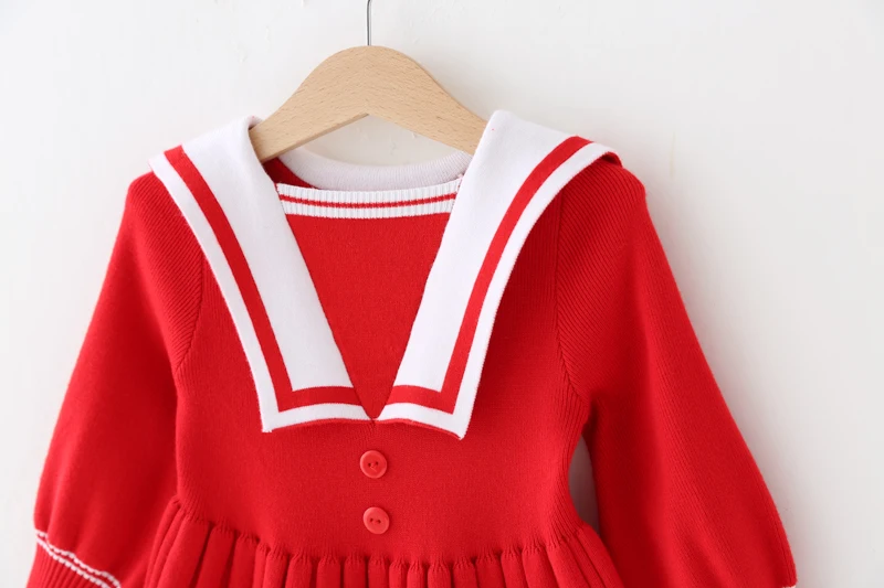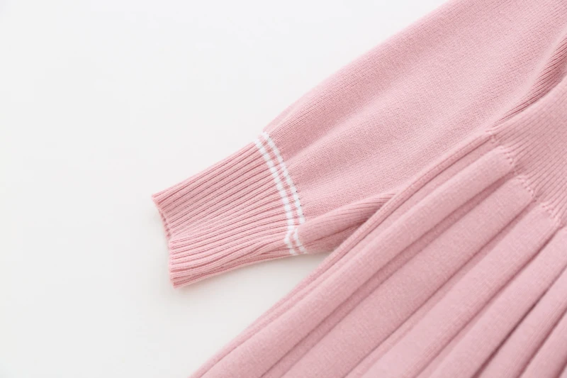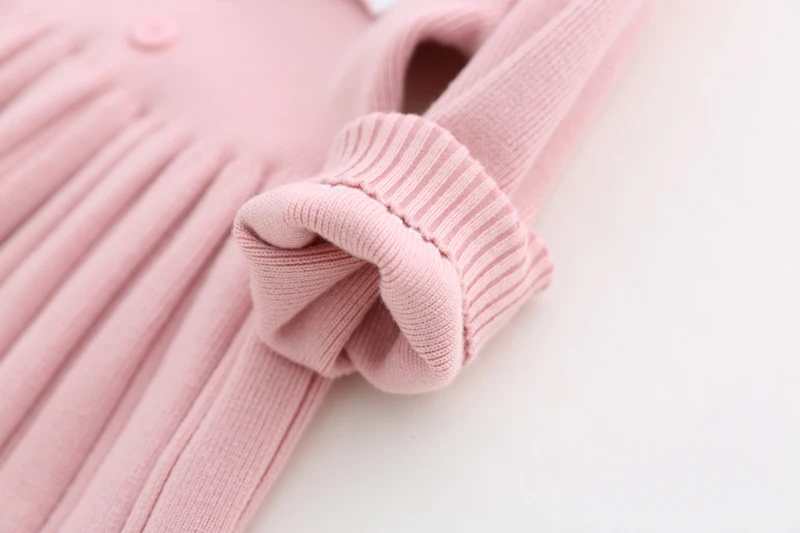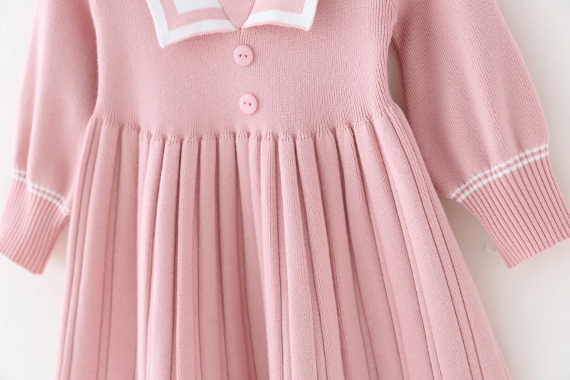 Вязаное шерстяное платье с длинным рукавом для девочек, новинка для весны и осени, вязаный свитер-платье для девочек с рюшами и лацканами, платье с бантом