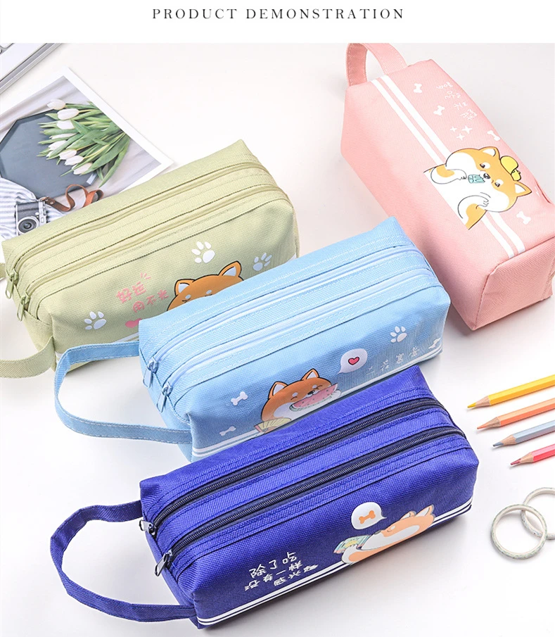 Yisuremia Kawaii shaba Inu Большой Вместительный двухслойный чехол-карандаш из ткани Оксфорд корейский органайзер для ручек школьные канцелярские принадлежности