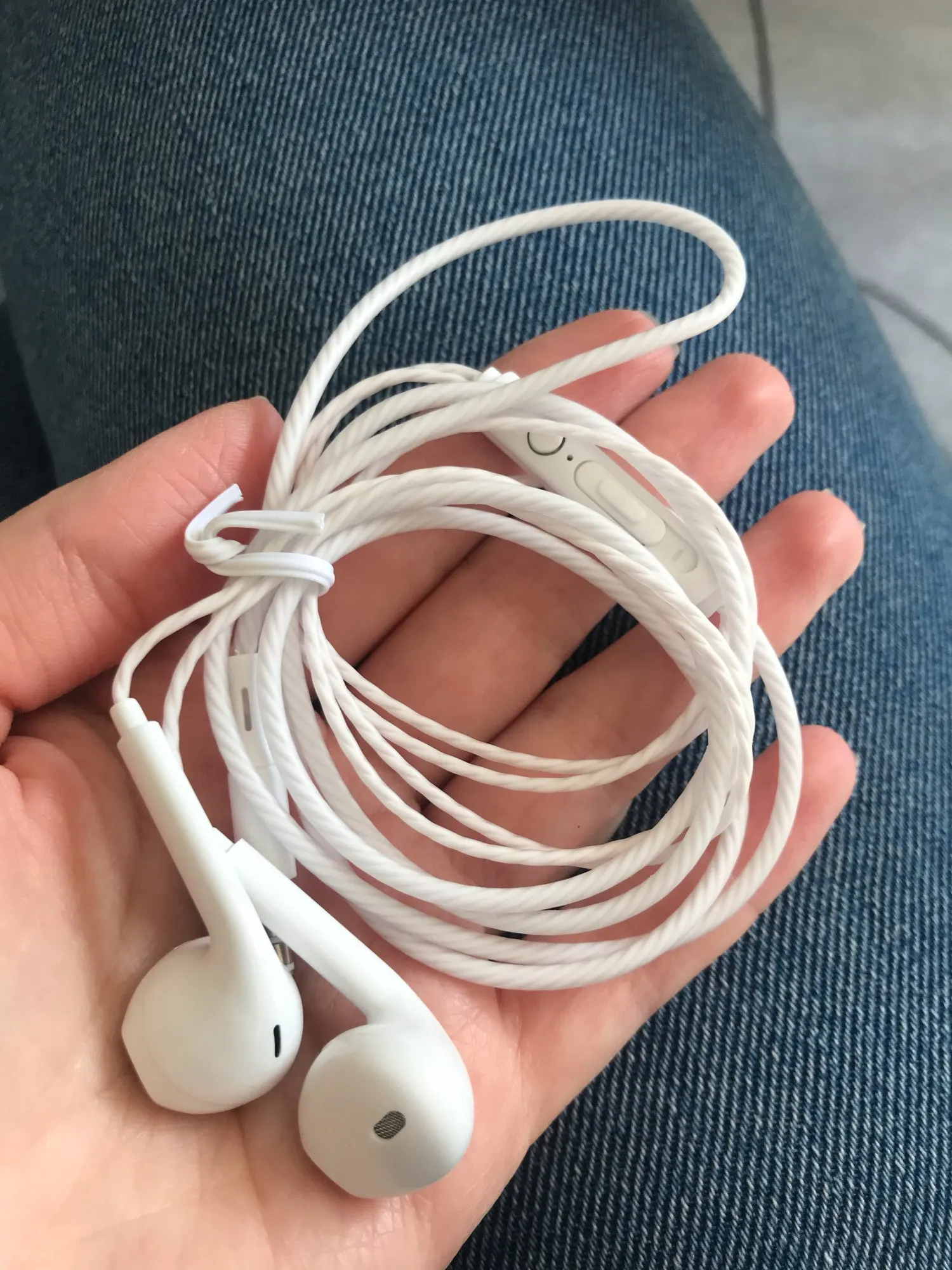обычные наушники с проводом в силиконовой оболочке, плюсом конечно является регулировка громкости на микрофоне