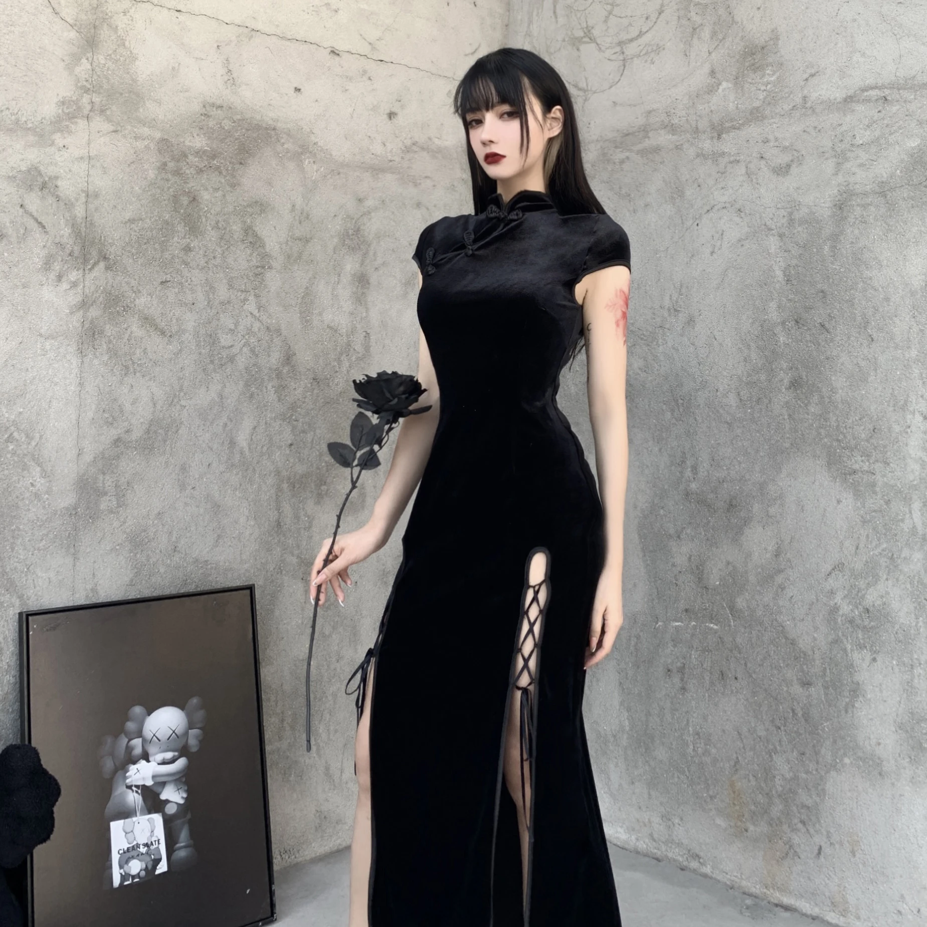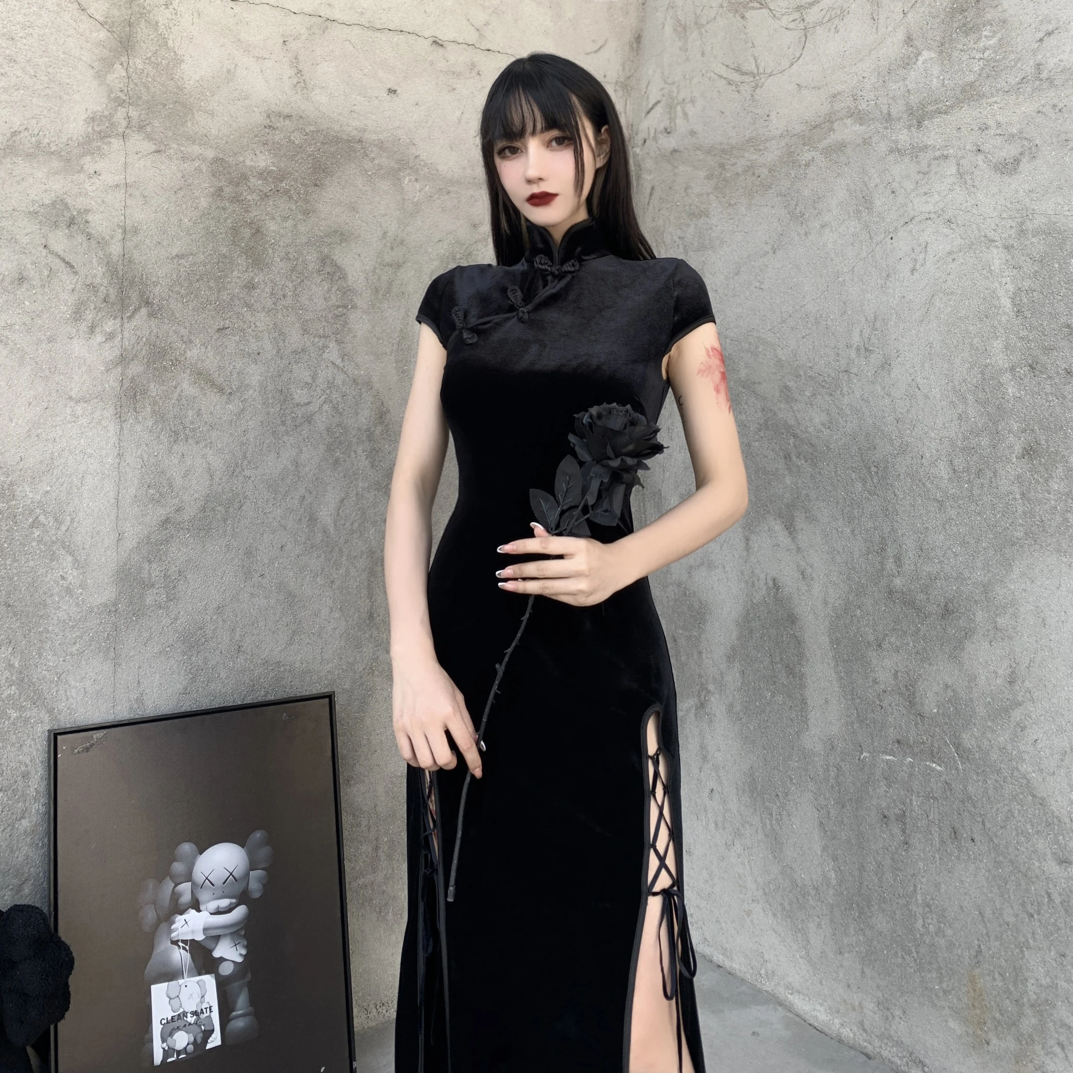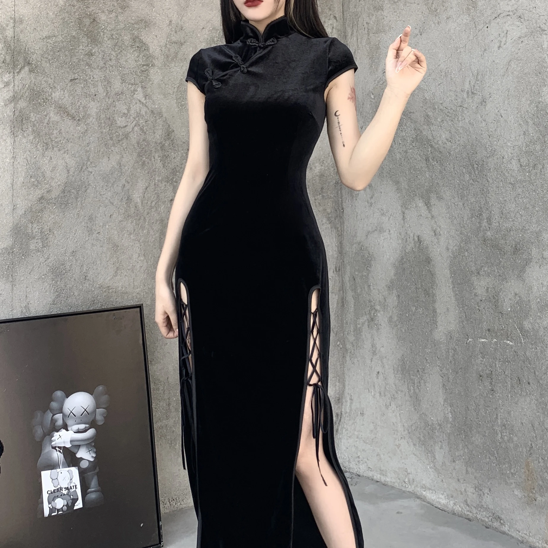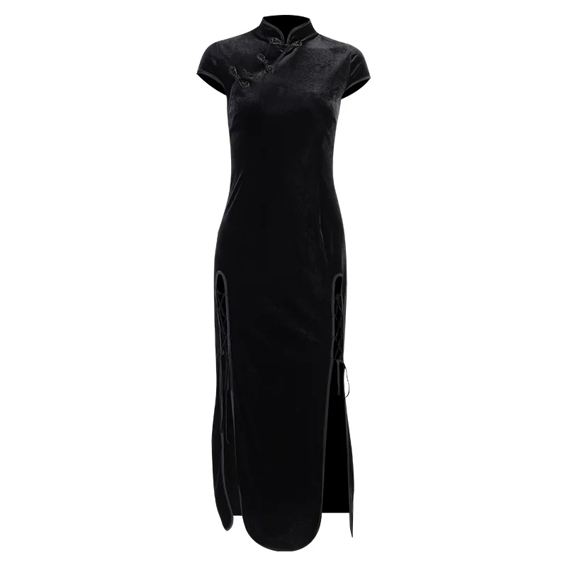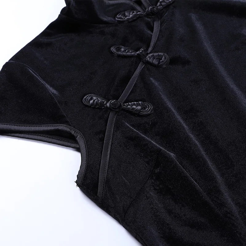 Женское винтажное платье-водолазка InsDoit, черное облегающее платье в китайском стиле с коротким рукавом и разрезом, 2019