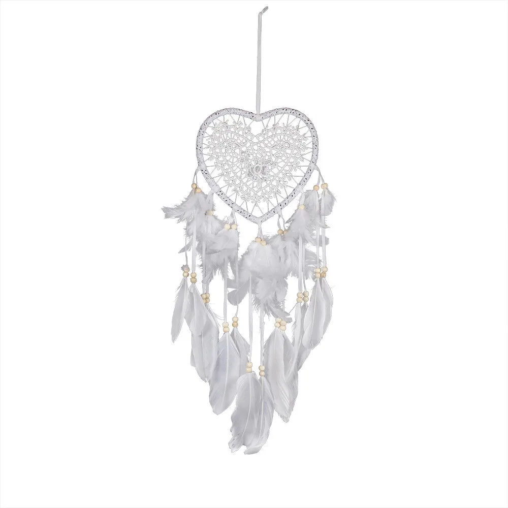 Ночсветильник Ловец снов с перьями в форме сердца, настенное украшение ручной работы, плетеные украшения, подарок на день рождения и выпускной