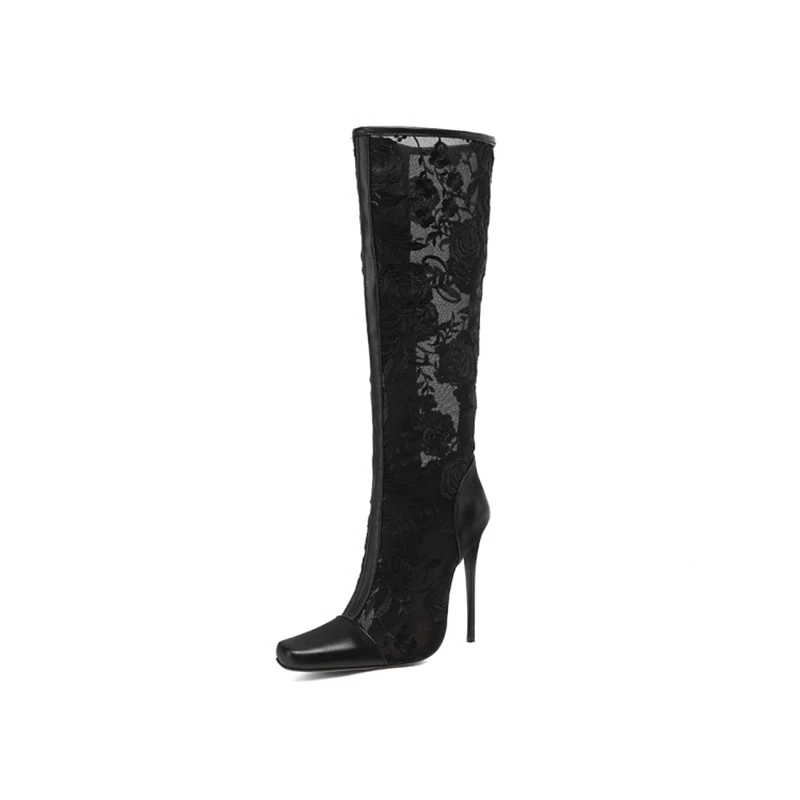 Zapatos De Mujer; Коллекция 2021 года; Сапоги с вышивкой; Женские сапоги до колена из сетчатого материала; Обувь на шпильке; Сезон весна-лето; Размера плюс; 48 FV-114