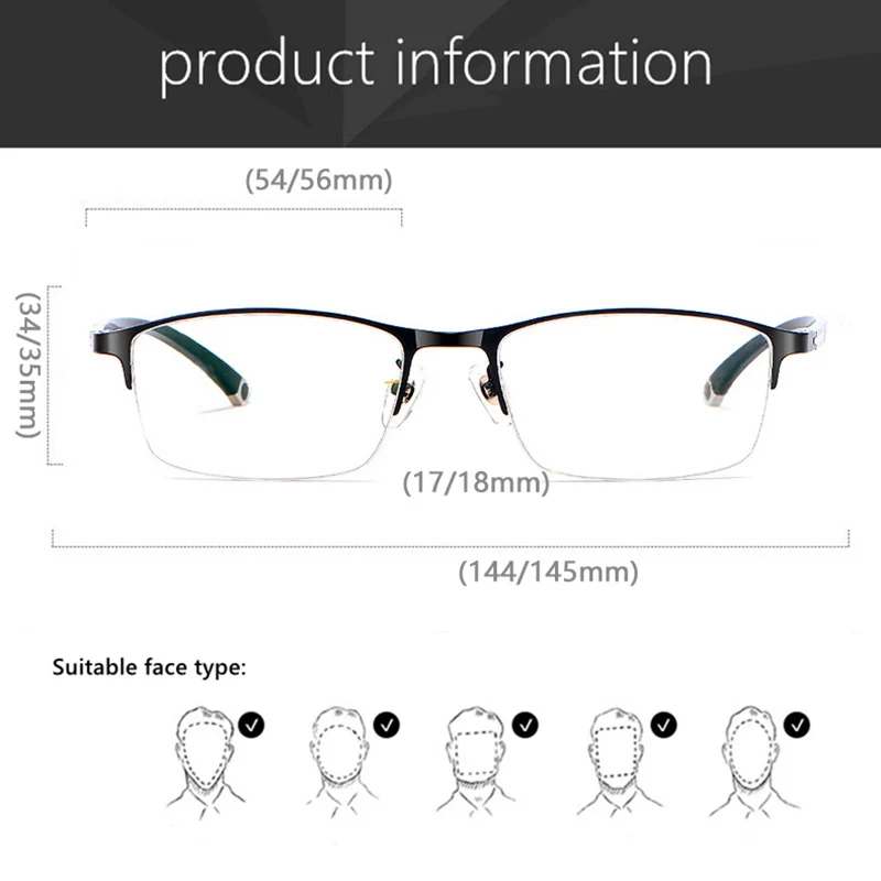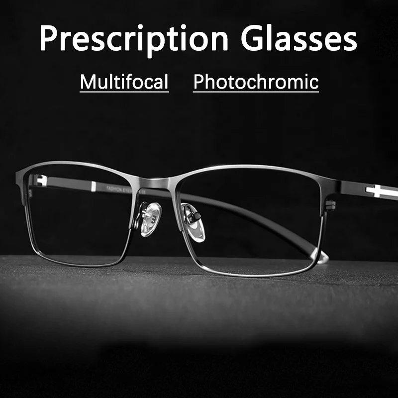 Очки для чтения мужские с многофокальными линзами, фотохромные, с металлической полуоправой