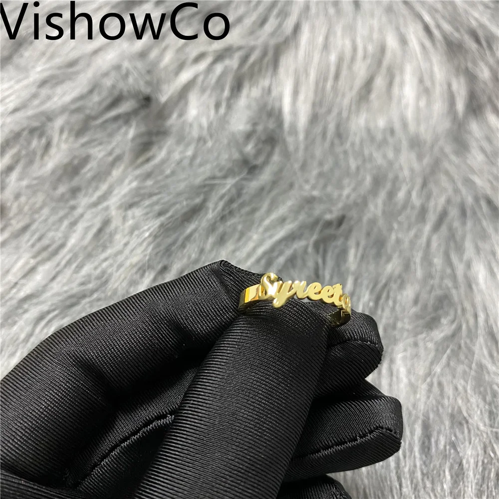 Кольцо с именем VishowCo на заказ, кольцо из нержавеющей стали на заказ с регулируемым размером, уникальные ювелирные изделия, обручальные кольца для женщин, подарки
