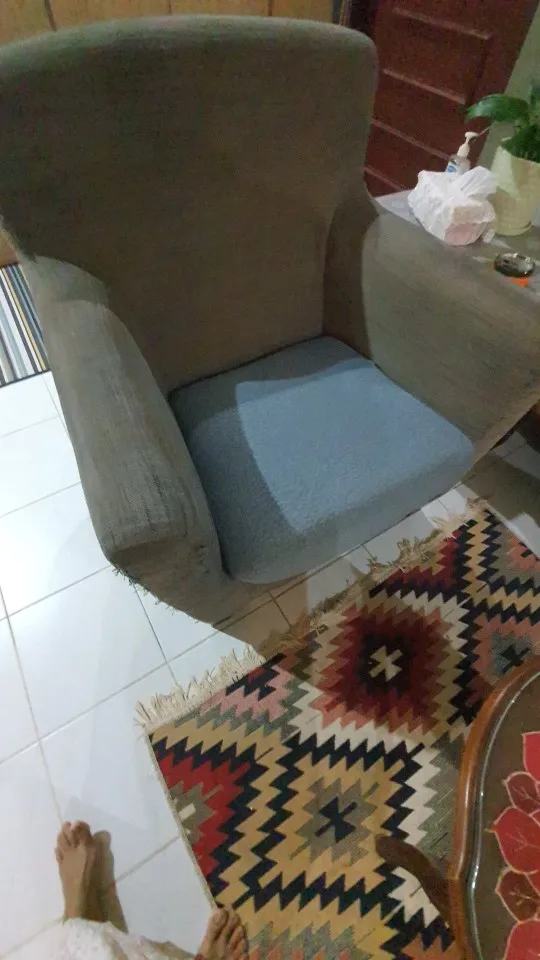 Симпатичный чехол, хорошо подошел к креслу с "кудрявой" фактурой. размерная таблица продавца соответствует действительности.