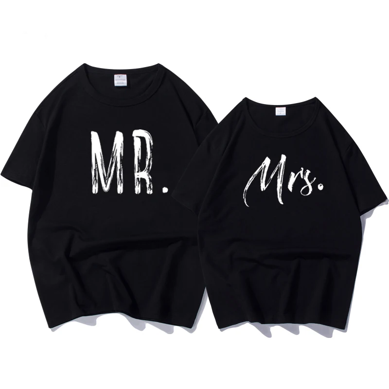 Футболка женскаямужская с буквенным принтом, белая Свободная рубашка с надписью MRMRS, топ для пар, на лето