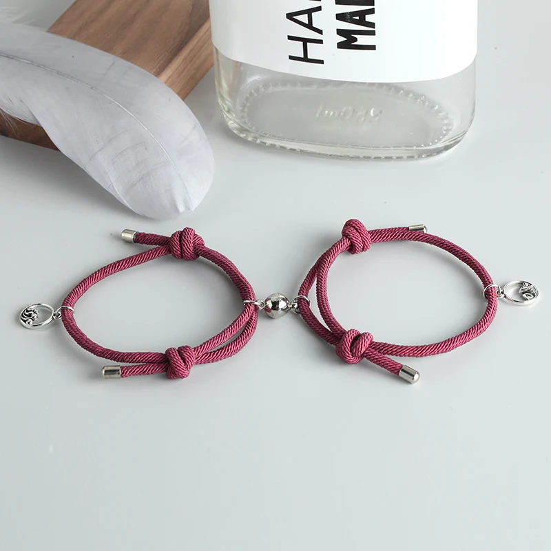 2 шт дружбы веревка магнит браслеты DIY плетеная пара магнитный бра...