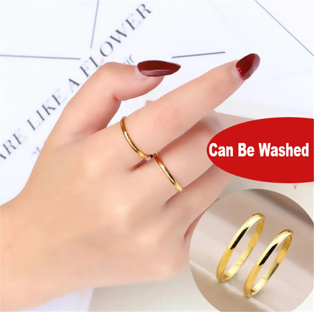 Тонкое кольцо из титановой стали, 2 мм, нержавеющая сталь 316L, никогда не выцветает, моющееся обручальное кольцо